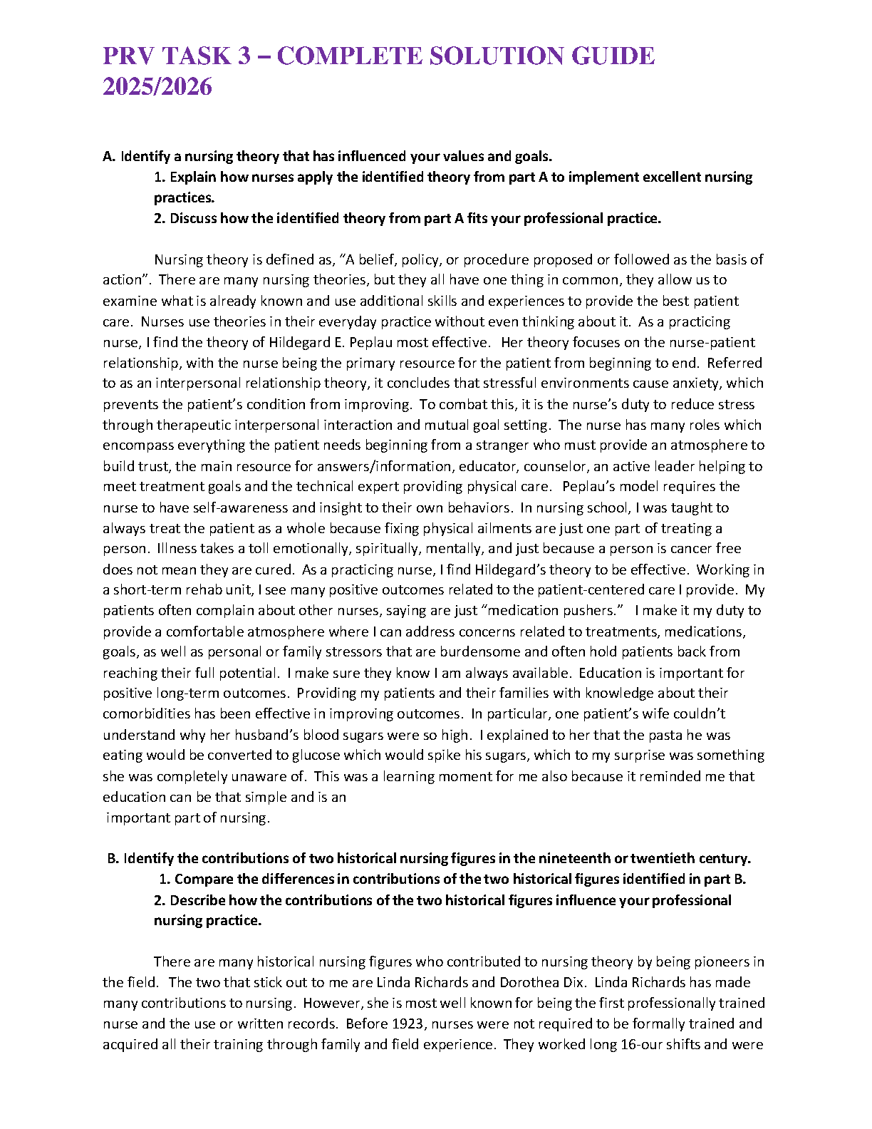 PRV Task 3: Complete A+ Graded Solution Guide on Nursing Theories & Historical Figures, Latest 2025/2026 Edition