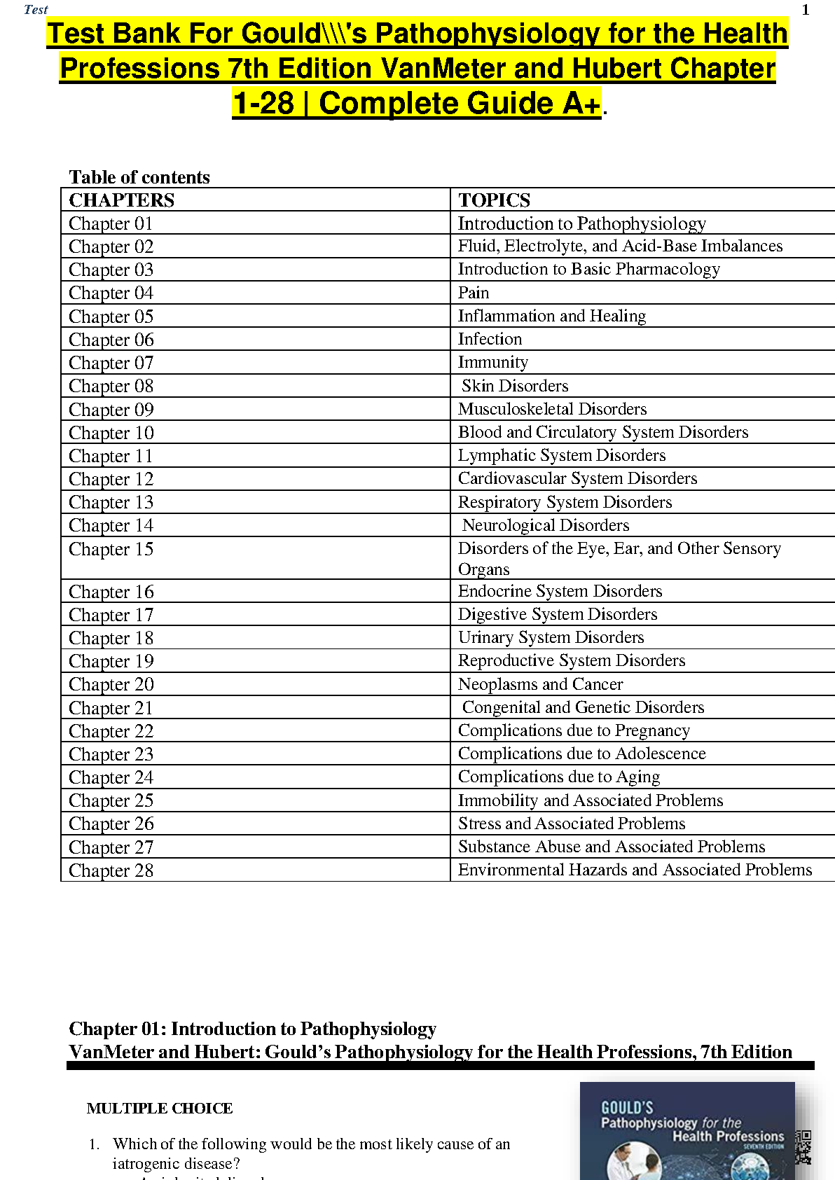 Unlock academic success with the official Test Bank for the 7th Edition of Gould's Pathophysiology for the Health Professions by Karin C. VanMeter and Robert J. Hubert. This comprehensive resource is filled with hundreds of practice questions and detailed answers that cover every chapter, designed to help you master complex concepts and excel in your exams. Elevate your understanding, boost your confidence, and ensure you pass your course on the first attempt with this indispensable study companion.