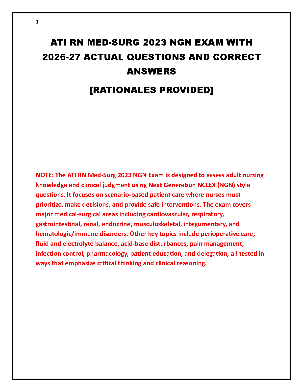 ATI RN Med-Surg 2023 NGN Exam Test Bank: 2026-2027 Edition with Questions, Answers, and Rationales