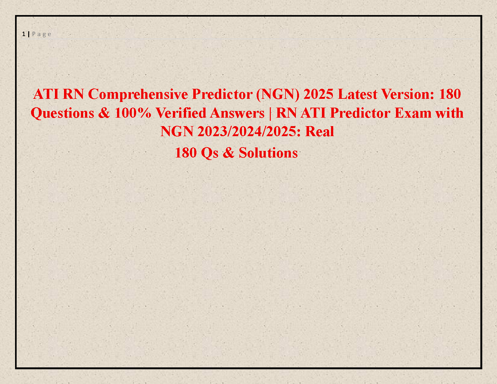 Ace your nursing exams with our latest 2025 study guide for the ATI RN Comprehensive Predictor (NGN). This complete test bank features 180 meticulously compiled questions, each with a 100% verified answer and detailed solution. Designed to mirror the real 2023/2024/2025 NGN exam format, this resource is your key to mastering the material, building confidence, and passing on your first attempt. Stop worrying about resits and secure your nursing future with this essential preparation tool.