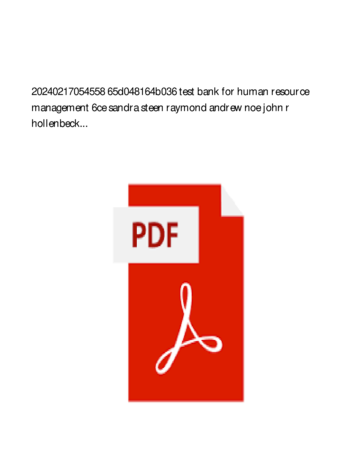 Test Bank for Human Resource Management, 6th Canadian Edition, by Sandra Steen, Raymond A. Noe, John R. Hollenbeck, Barry Gerhart, and Patrick M. Wright