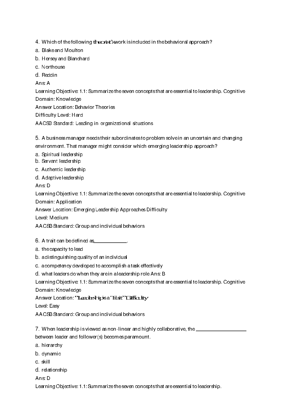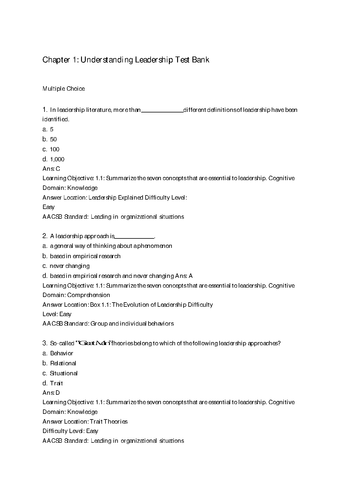 Excel in your leadership course with the official Test Bank for 'Introduction to Leadership: Concepts and Practice,' 5th Edition by Peter G. Northouse. This complete collection of exam questions and answers covers every chapter, providing you with an extensive range of multiple-choice, true/false, and essay questions. It's the ultimate study tool to test your knowledge, master complex concepts, and prepare effectively for your exams to achieve outstanding results.