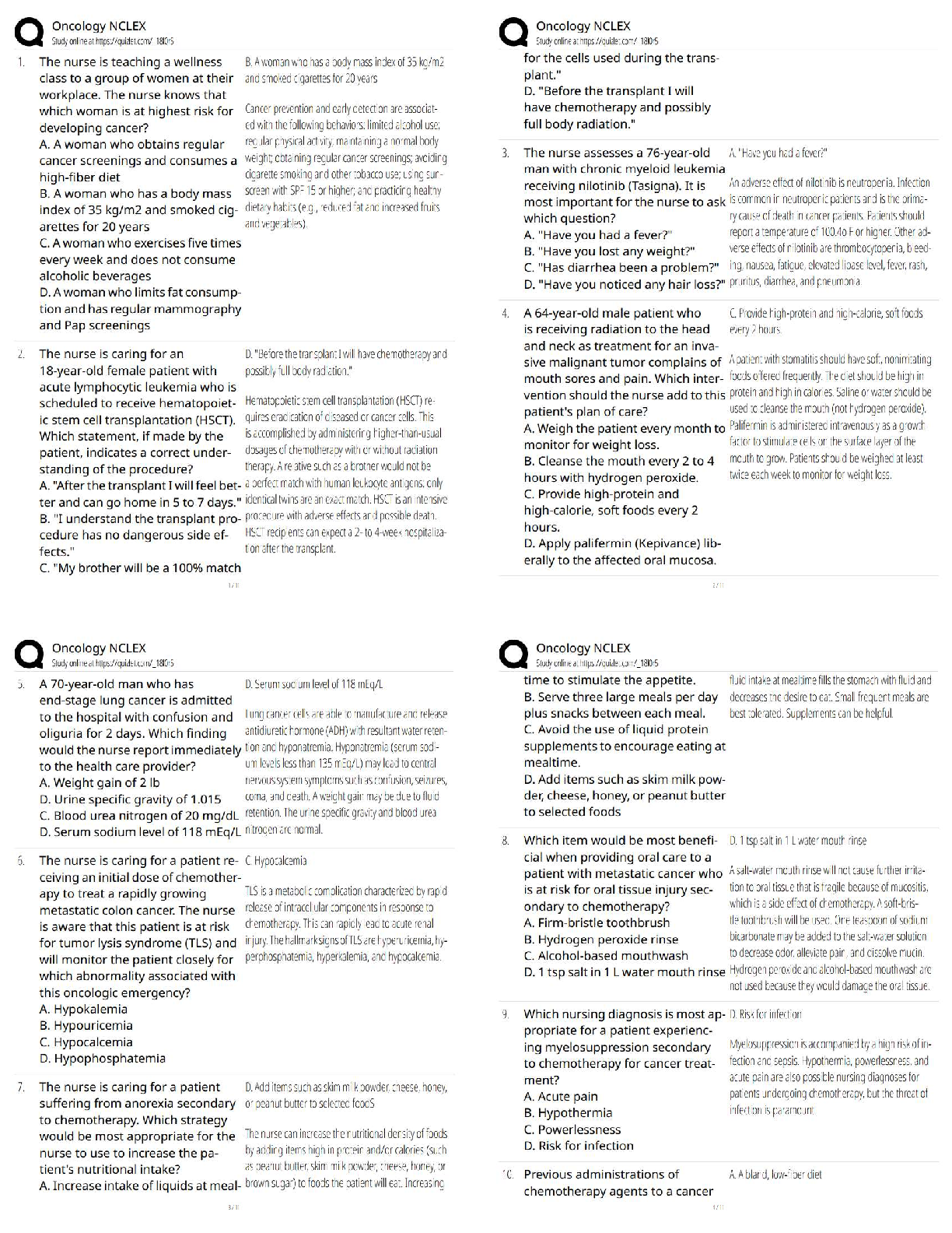 Prepare to excel in the oncology section of your NCLEX-RN exam with our newly updated 2025/2026 Test Bank. This comprehensive resource is packed with hundreds of practice questions covering all critical areas of oncology nursing, from cancer prevention and early detection to complex chemotherapy and radiation treatments. Each question is designed to mirror the format and difficulty of the actual NCLEX, and comes with a detailed, easy-to-understand rationale. Master key concepts, identify your weak spots, and build the confidence you need to pass your nursing boards on the very first attempt. This is the ultimate study tool for nursing students aiming for success.
