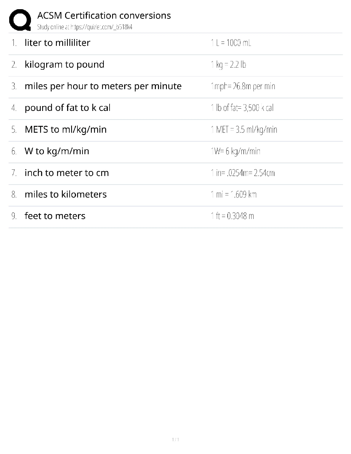 Unlock your potential and ace the ACSM Certified Personal Trainer (CPT) exam on your first go with this essential conversions study guide, fully updated for the 2025/2026 academic year. This comprehensive, one-page cheat sheet simplifies the crucial calculations you need to know, from METS to ml/kg/min and miles to kilometers. Based on the authoritative 'ACSM's Guidelines for Exercise Testing and Prescription, 12th Edition,' this resource is designed to help you master the math, build your confidence, and avoid costly resits. Download now to streamline your study process and get certified faster!