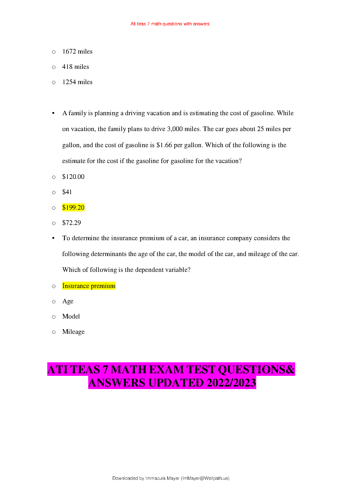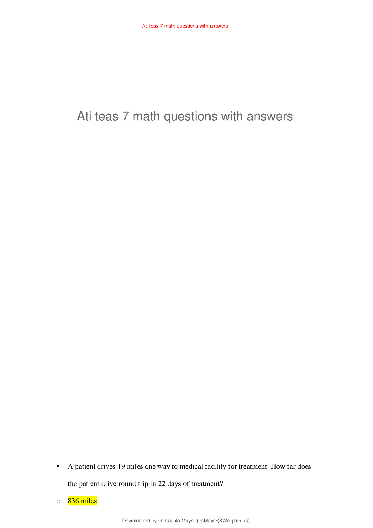 Ace the math section of your ATI TEAS 7 exam with our comprehensive test bank, fully updated for the 2025/2026 academic year. This essential study guide is packed with a wide range of practice questions that mirror the actual exam format and difficulty. Each question comes with a detailed, verified answer, allowing you to understand the concepts and master the calculations needed for success. Stop worrying about resits and secure your spot in nursing school. Download now and get the ultimate resource to help you pass the ATI TEAS 7 Math exam on your very first attempt!