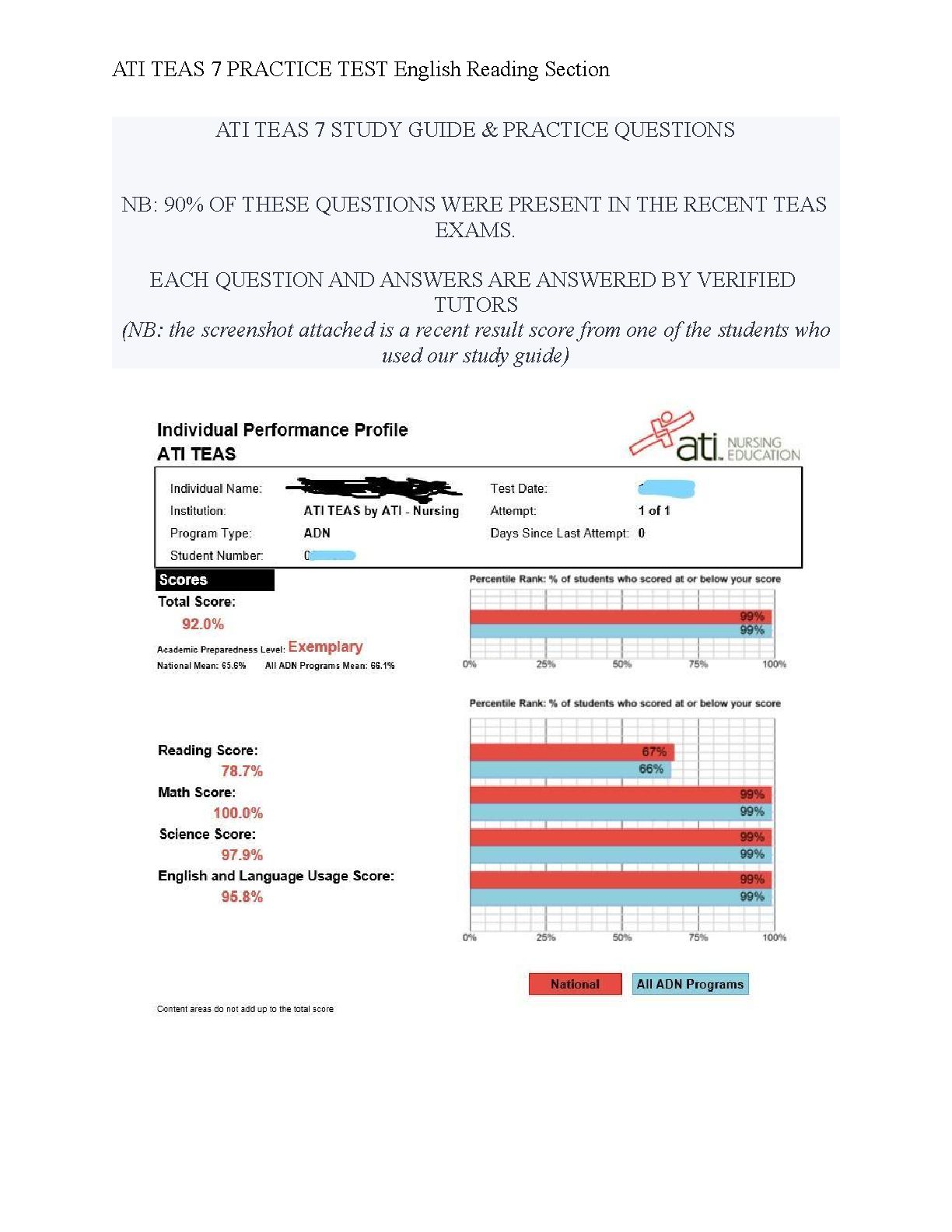 ATI TEAS 7 English Reading Test Bank by ATI Nursing Education | 2025/2026 Edition for First Attempt Success