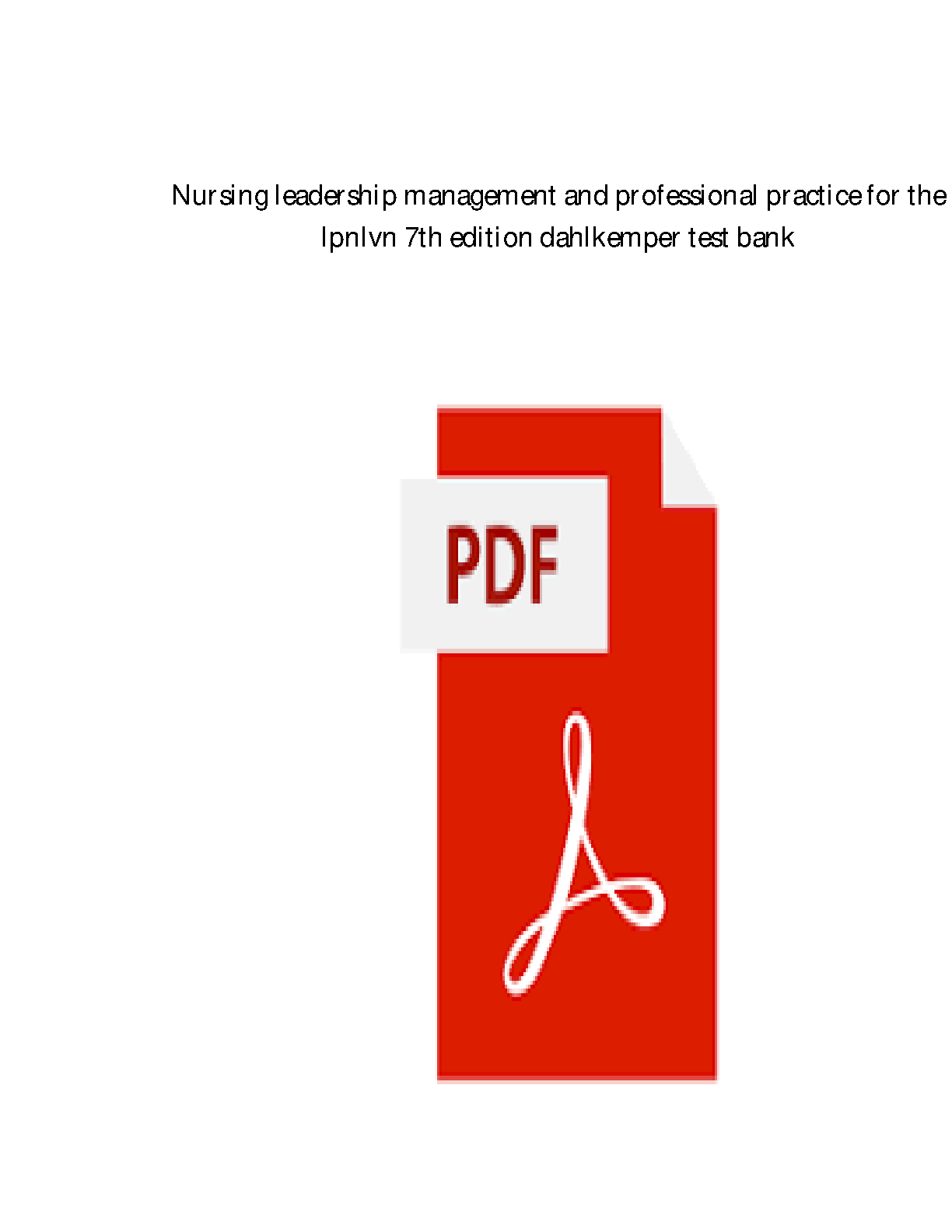 Test Bank for Nursing Leadership, Management, and Professional Practice for the LPN/LVN, 7th Edition by Tamara R. Dahlkemper & Mary Ann Anderson