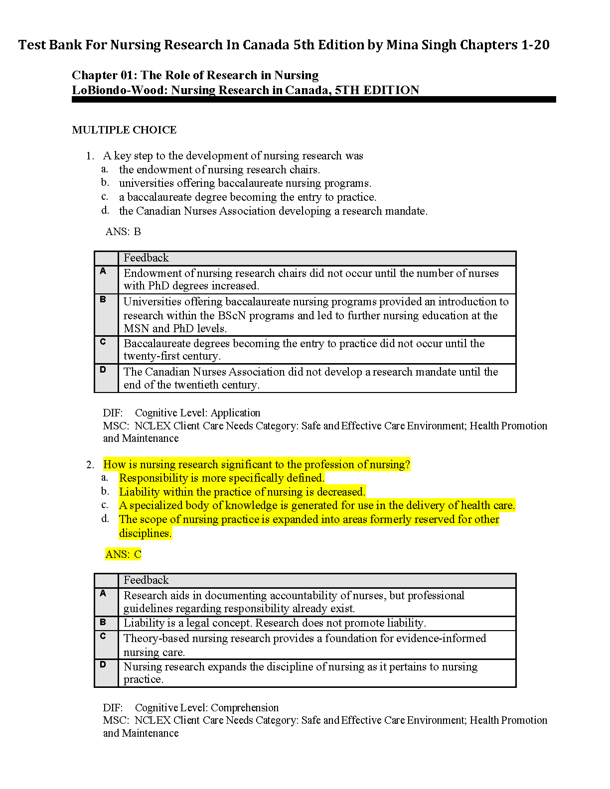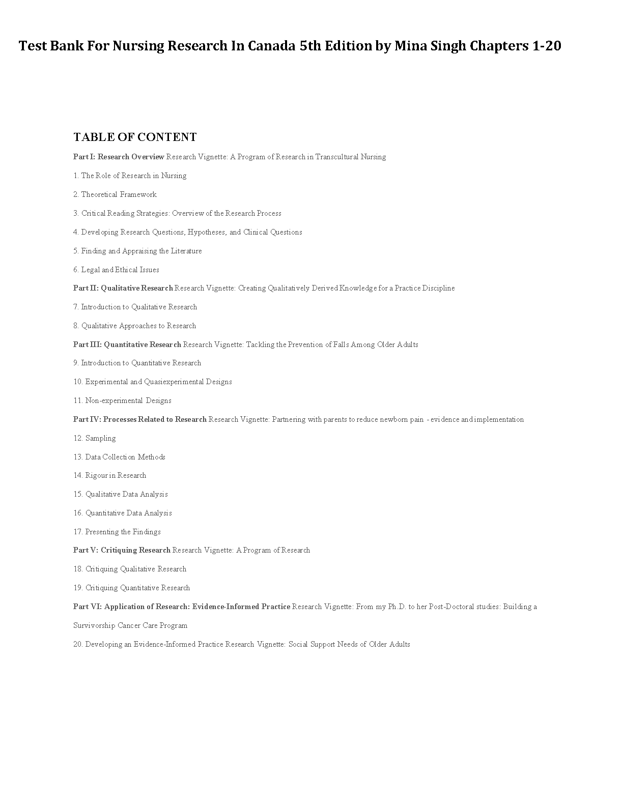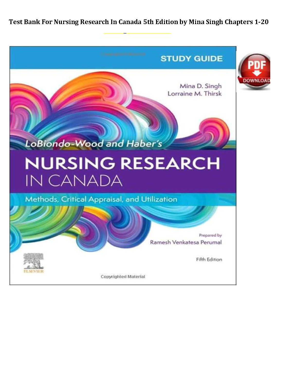 Test Bank for Nursing Research in Canada, 5th Canadian Edition by Geri LoBiondo-Wood, Judith Haber, Cherylyn Cameron, and Mina D. Singh (Chapters 1-20)
