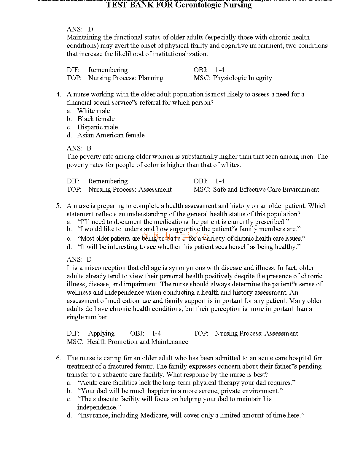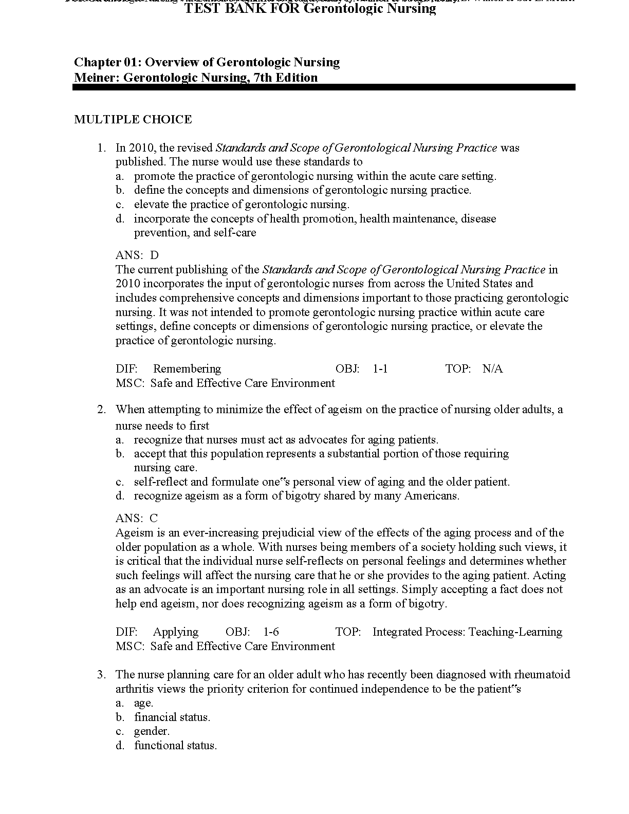 Achieve top grades in your gerontology course with the official Test Bank for 'Gerontologic Nursing,' 7th Edition. Authored by Yeager, Winton, and Meiner, this comprehensive resource provides a complete collection of exam questions and answers that mirror the textbook's content. Covering every chapter, this test bank features a variety of question formats, including multiple-choice and critical thinking scenarios, all with detailed rationales. It's the ultimate study tool to help you master key concepts, prepare effectively for exams, and excel in your nursing studies.