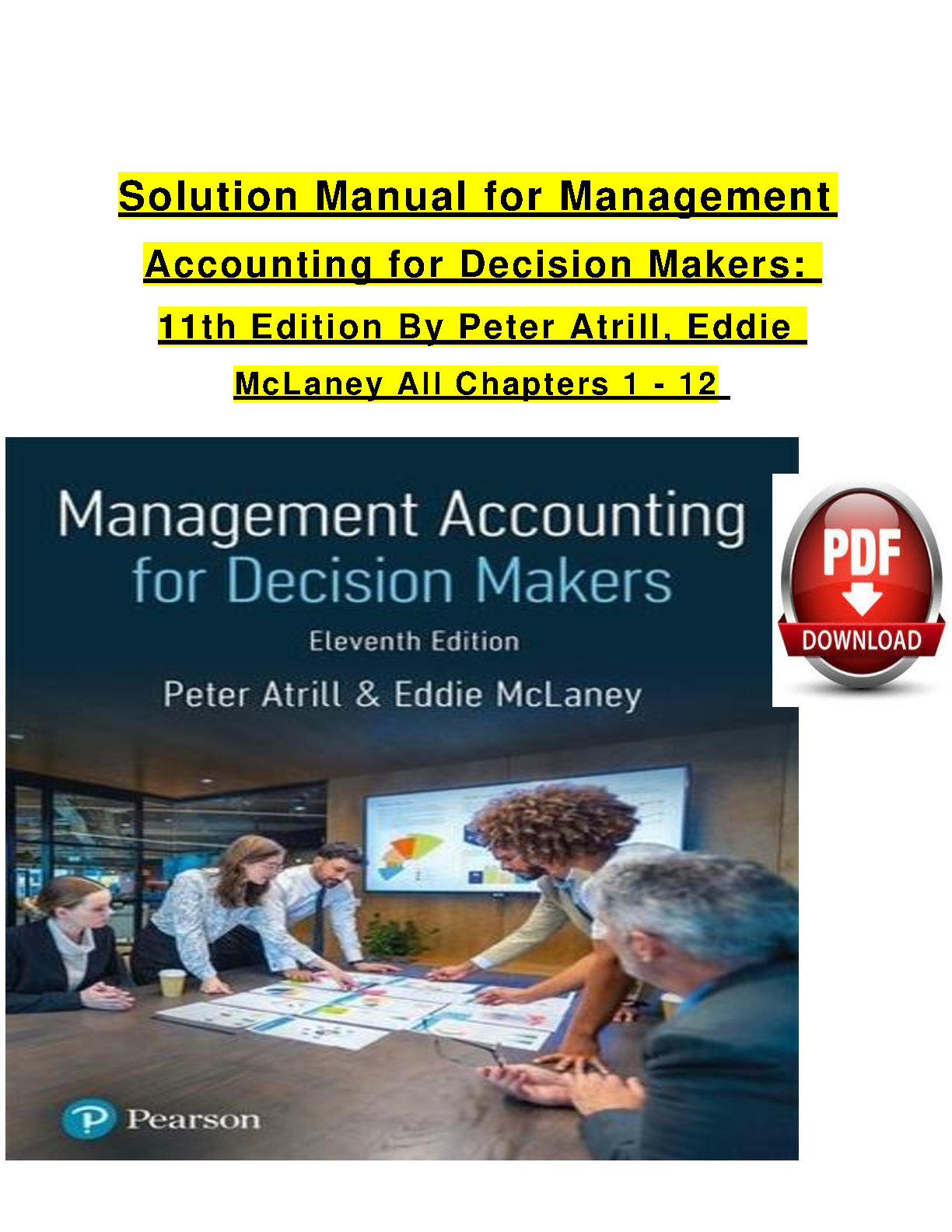 Solution Manual for Management Accounting for Decision Makers, 11th Edition by Peter Atrill & Eddie McLaney - Complete Chapters 1-12