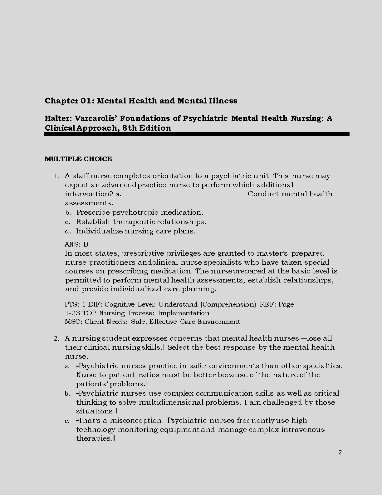 Test Bank for Varcarolis' Foundations of Psychiatric-Mental Health Nursing, 9th Edition by Margaret Jordan Halter (All Chapters 1-36)
