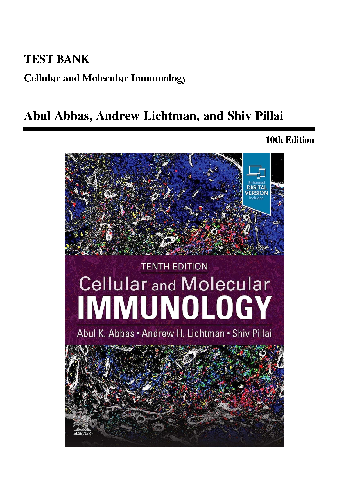 Test Bank for Cellular and Molecular Immunology, 10th Edition by Abul K. Abbas, Andrew H. Lichtman, and Shiv Pillai