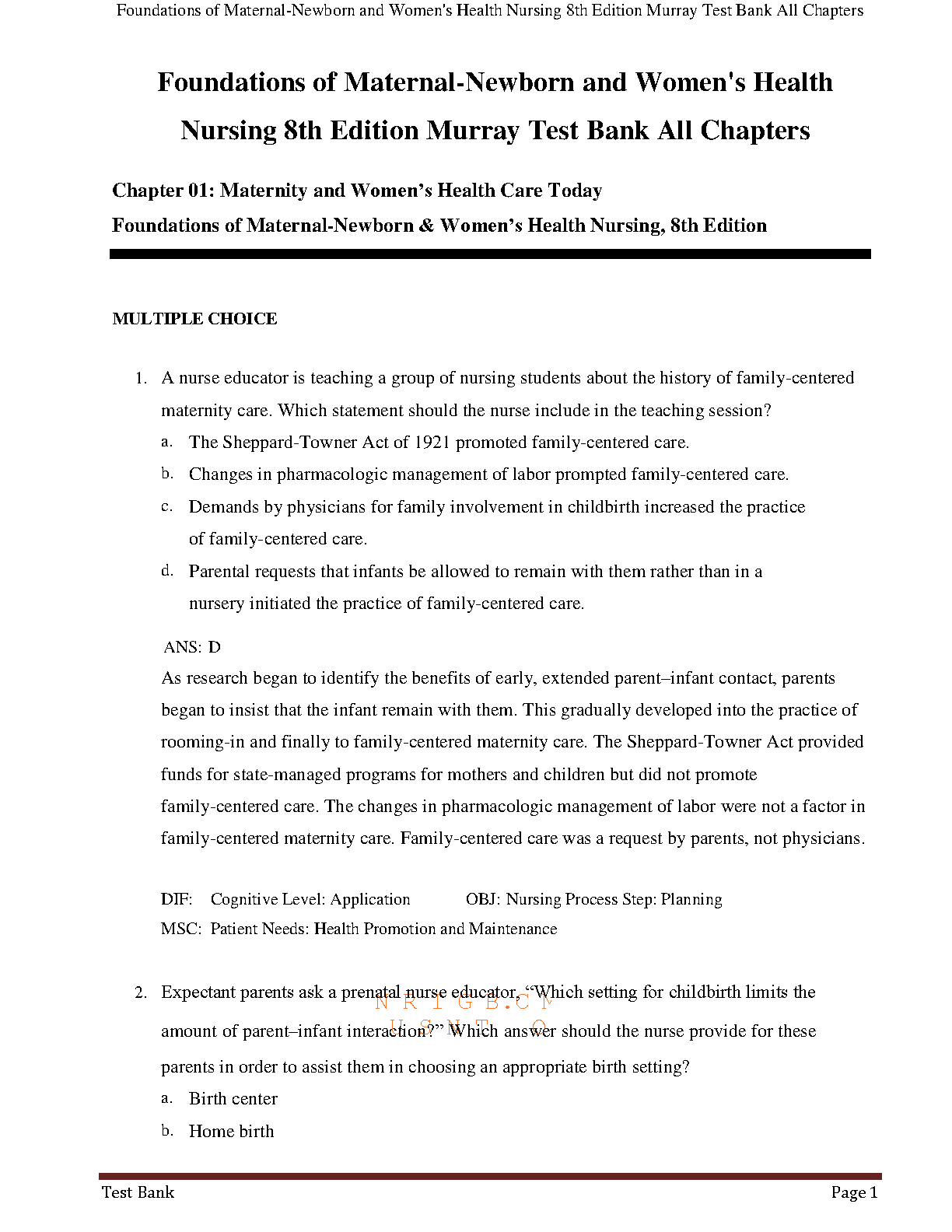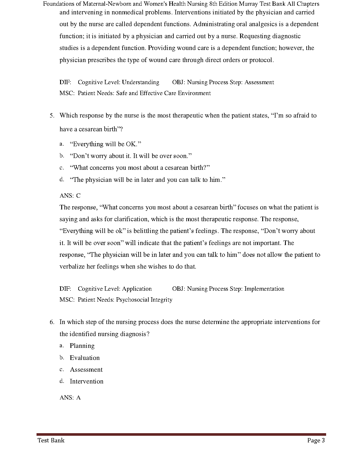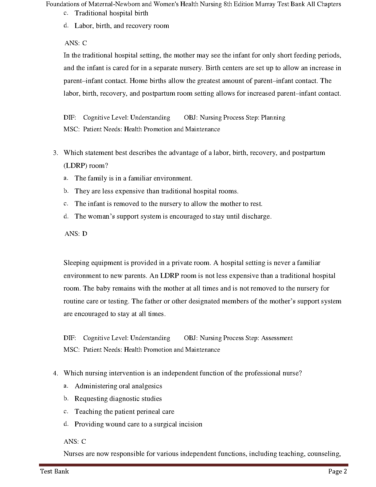 Gain a critical advantage in your studies with the complete Test Bank for the 8th Edition of Foundations of Maternal-Newborn and Women's Health Nursing by Murray, McKinney, and Smith. This invaluable resource contains a comprehensive collection of exam questions and answers covering all chapters of the textbook. Each question is accompanied by a detailed rationale to deepen your understanding of key concepts. Perfect for nursing students aiming to excel in their coursework and pass their exams with confidence. This digital test bank is your ultimate study companion for mastering maternity and women's health nursing.