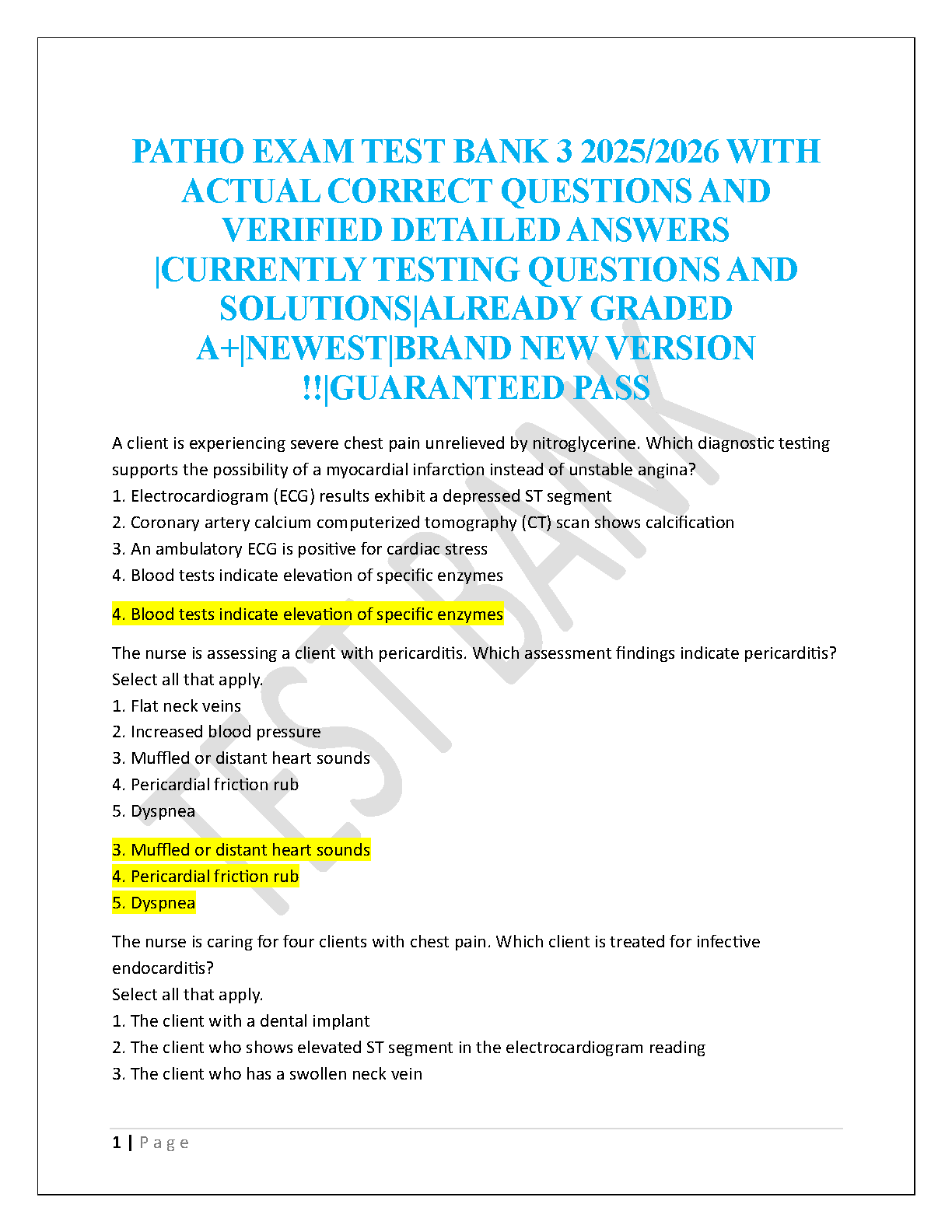 Master your pathophysiology course with the ultimate study resource: the Patho Exam 3 Test Bank for the 2025-2026 academic year. This comprehensive package features a collection of currently tested questions, each accompanied by a verified correct answer and a detailed rationale. Designed for nursing students aiming for an A+ grade, this test bank covers crucial topics and scenarios to ensure you are fully prepared. Stop cramming and start understanding the material deeply. Achieve success and pass your exam with confidence—guaranteed!