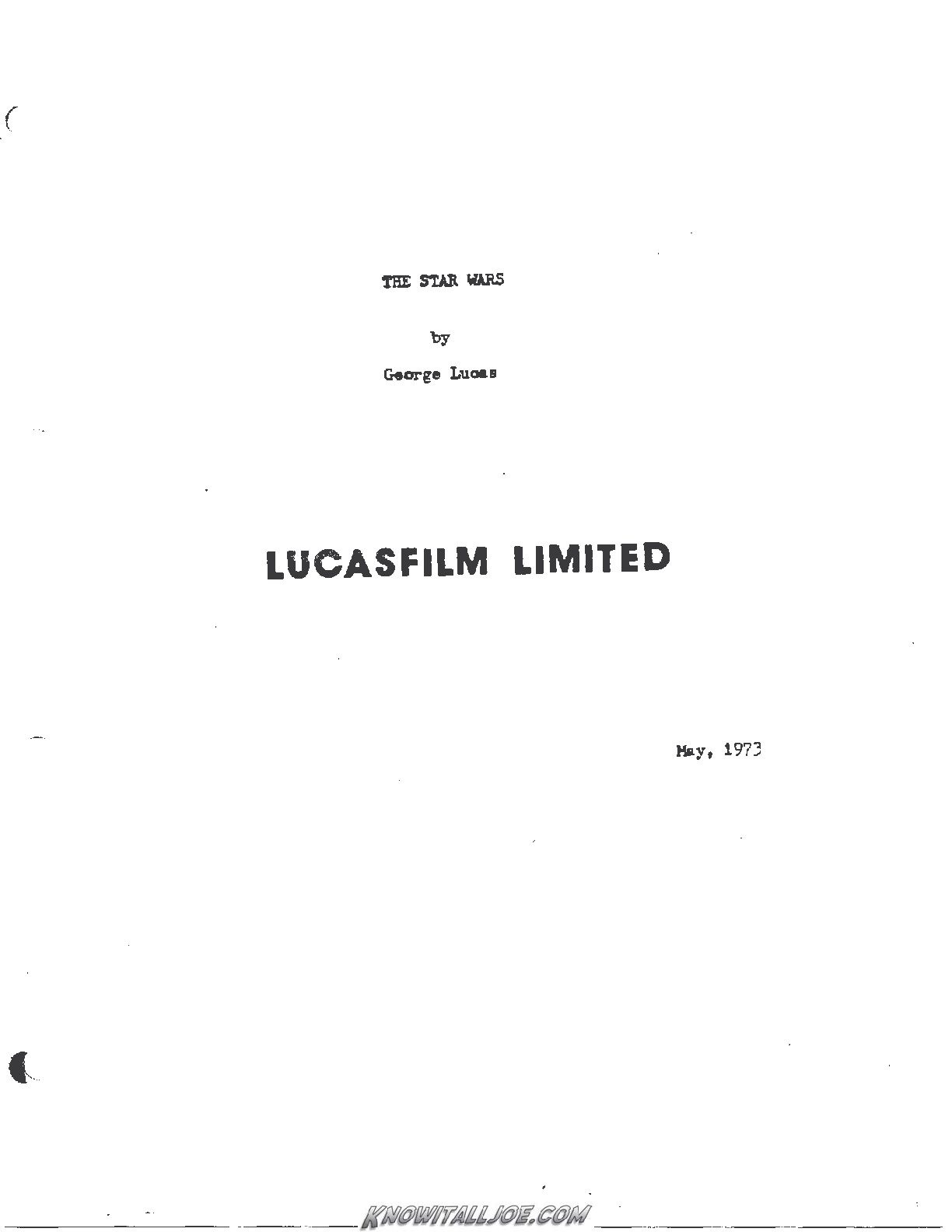 The Star Wars (May 1973) Original Story Synopsis by George Lucas - A Historic Case Study