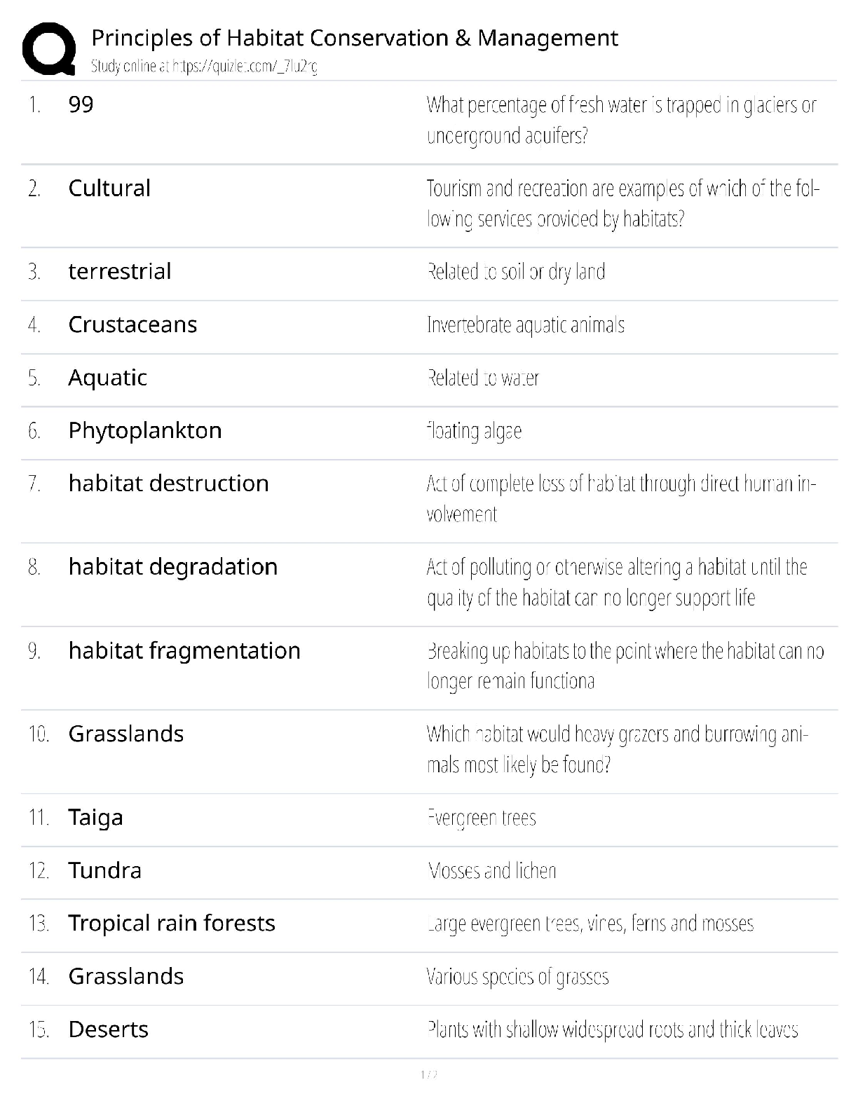 Excel in your studies with this updated 2025/2026 study guide for Principles of Habitat Conservation & Management. This resource offers a clear and concise breakdown of essential topics, including habitat types (terrestrial, aquatic, grasslands), major threats (destruction, degradation, fragmentation), and key ecological concepts. It is expertly designed to streamline your learning process, helping you master the material needed to pass your exams on the first try and avoid resits. The perfect tool for any student aiming for top grades in ecology or conservation biology.