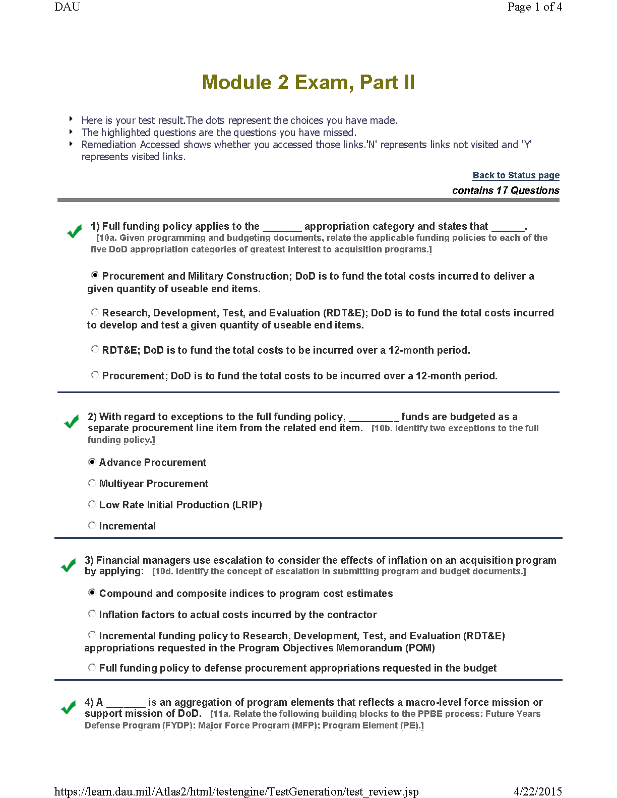 DAU Module 2 Exam Part II Test Bank: Verified Questions and Expert-Checked Answers for Financial Management & Procurement