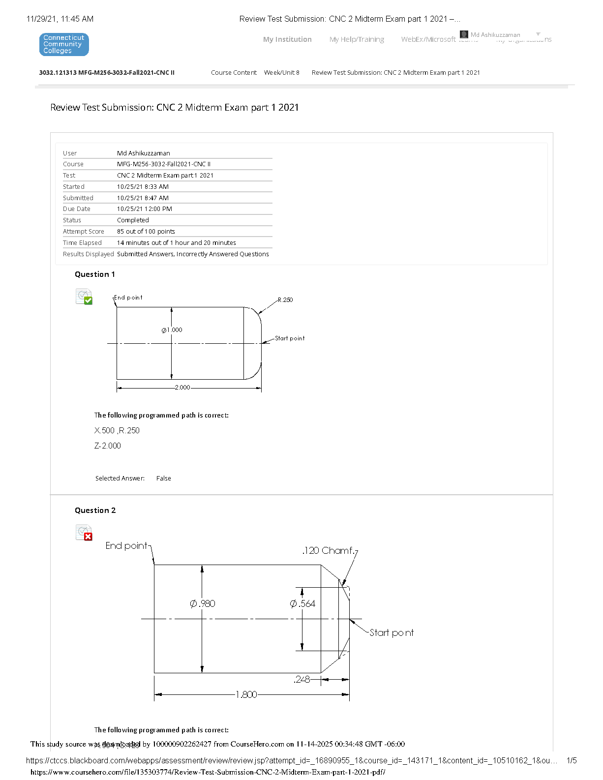 Unlock your potential in CNC programming with this comprehensive study guide for the MFG-M256 CNC 2 Midterm Exam from Fall 2021. This resource provides a complete review of Part 1 of the exam, featuring all questions, detailed technical drawings, and the submitted answers, which achieved a score of 85/100. Gain valuable insight into exam structure and question types, helping you to effectively prepare, master key concepts, and confidently pass your own exams on the first try. Ideal for students aiming for top grades in their manufacturing and engineering courses.