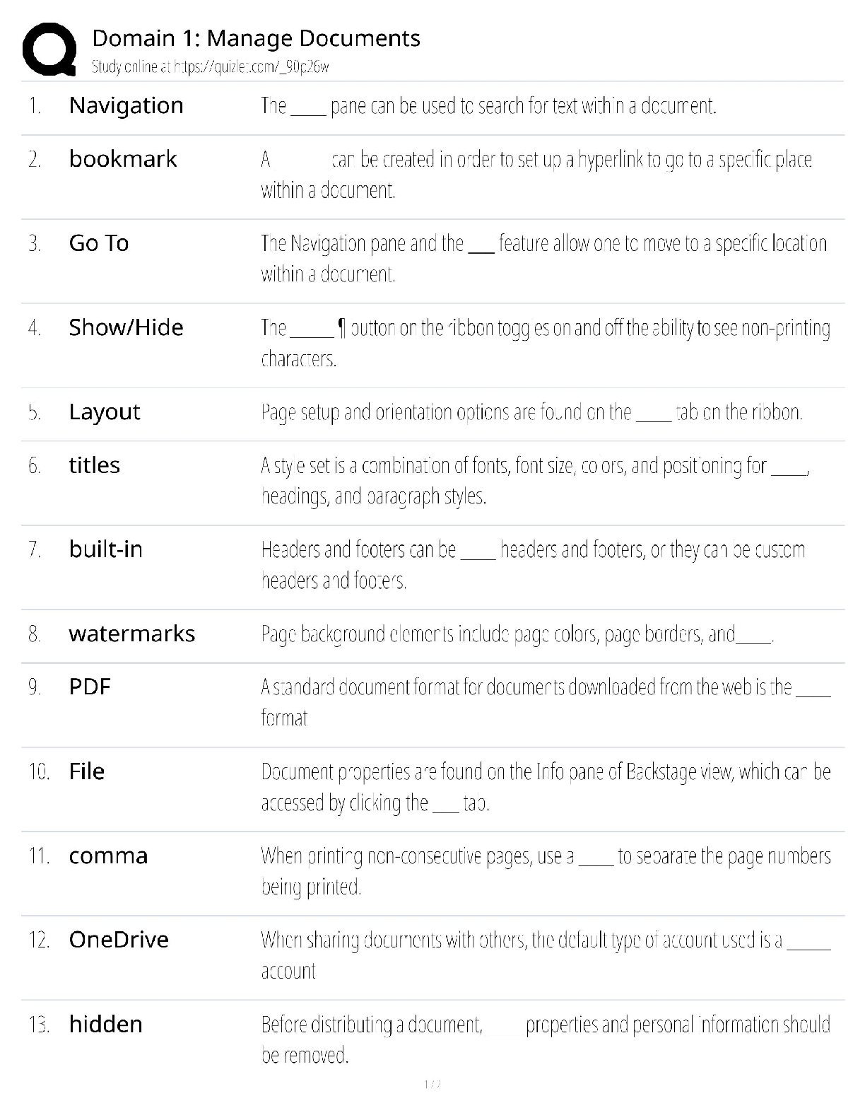 MOS Word 2019 Certification Exam: Domain 1 Manage Documents - Latest 2025/2026 Study Guide to Pass on Your First Try