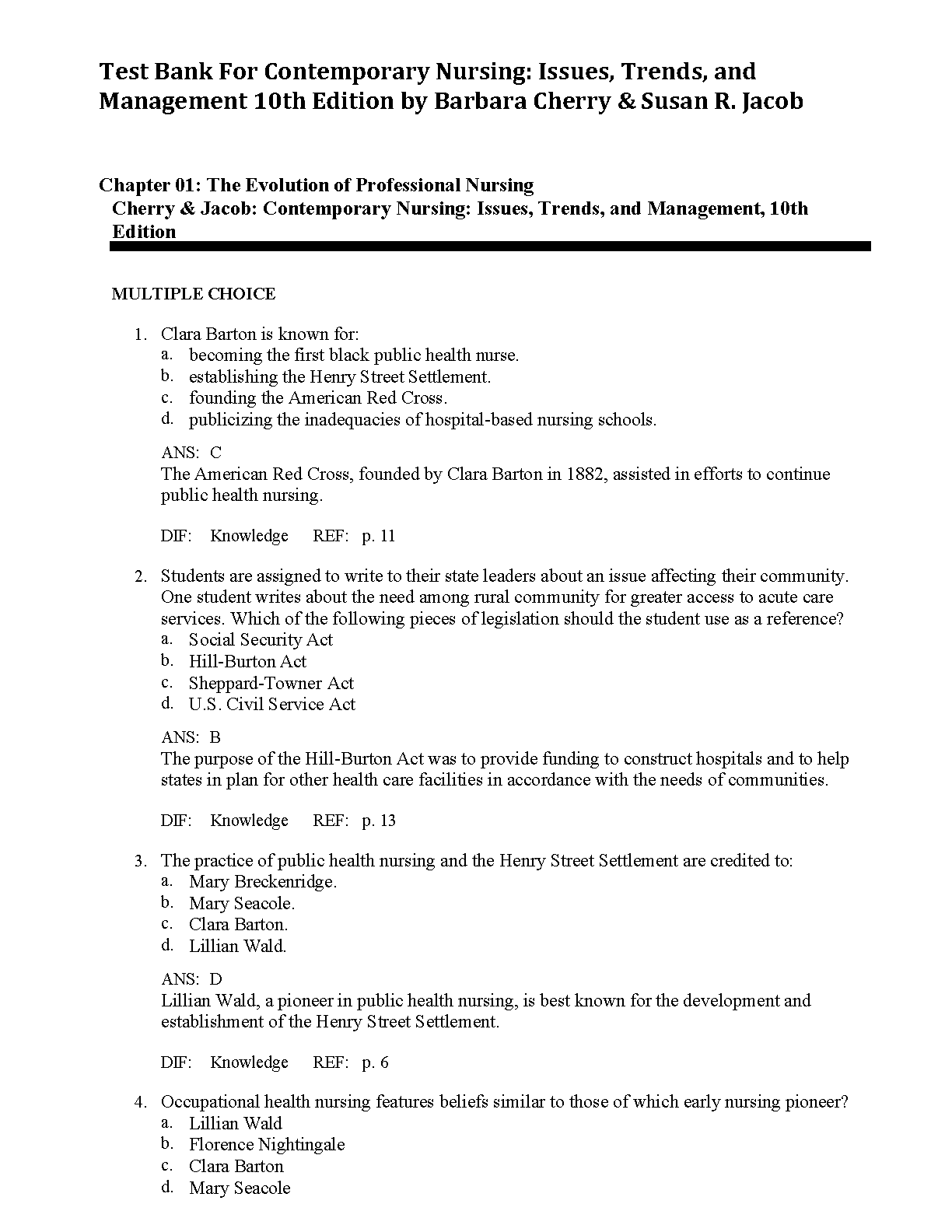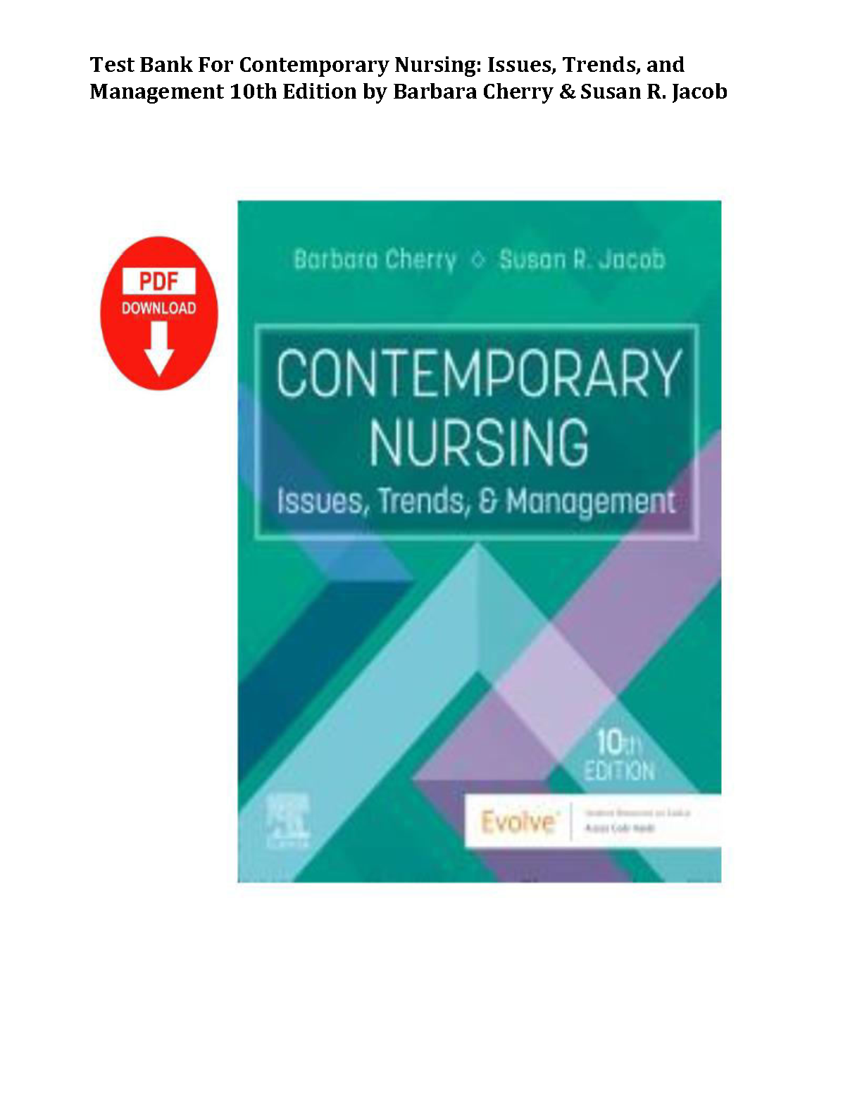 Test Bank for Contemporary Nursing: Issues, Trends, and Management, 10th Edition by Barbara Cherry & Susan R. Jacob
