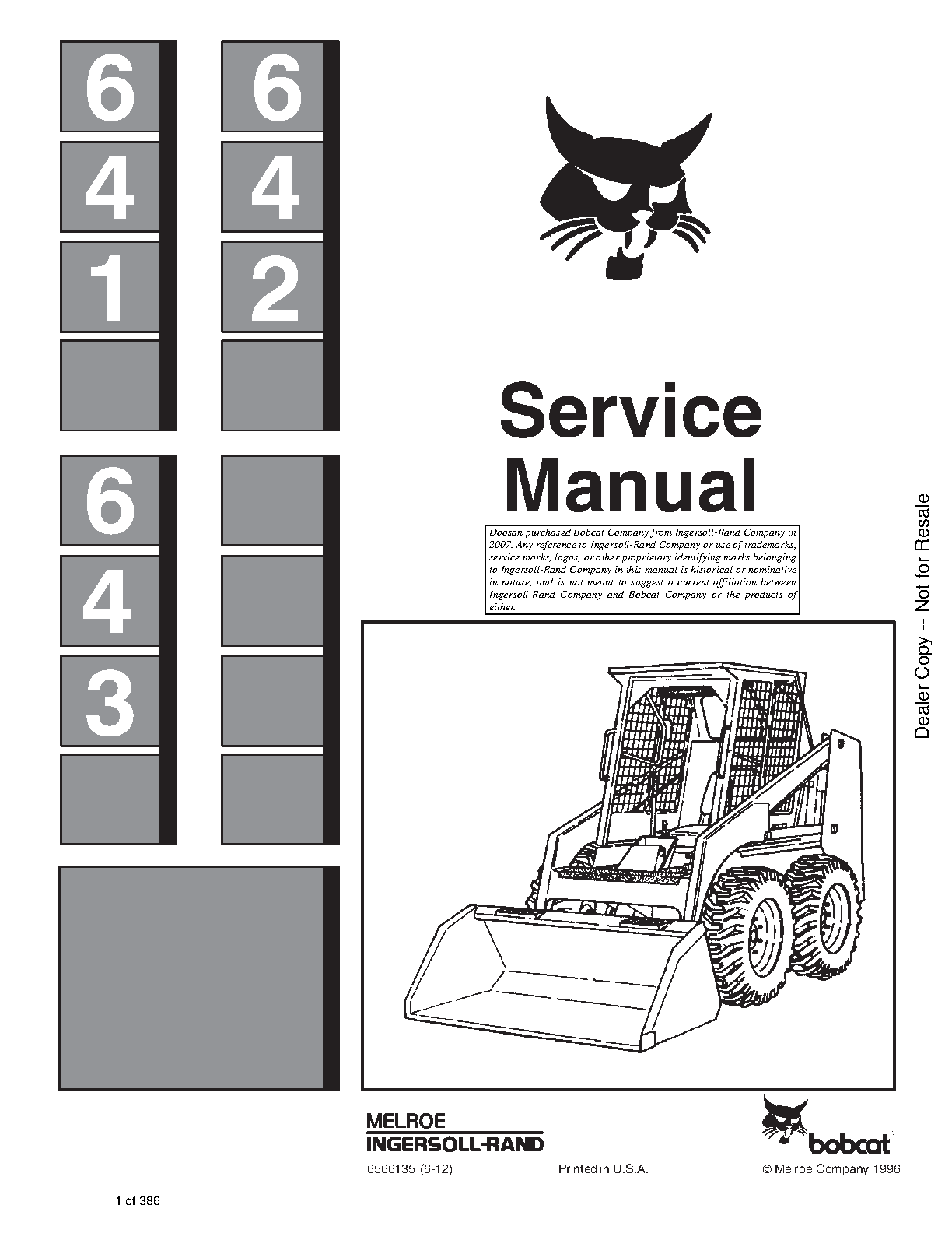 Official Bobcat 641, 642, 643 Skid-Steer Loader Service Manual (PN 6566135) - Complete Workshop Repair Guide by Bobcat Company