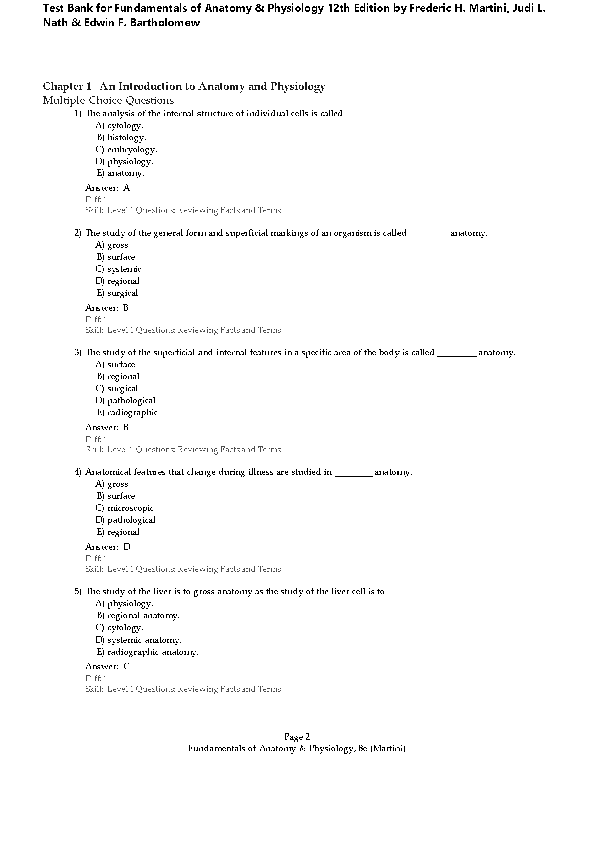 Unlock academic success with the official Test Bank for 'Fundamentals of Anatomy & Physiology, 12th Edition' by Frederic H. Martini, Judi L. Nath, and Edwin F. Bartholomew. This indispensable resource provides a comprehensive collection of exam-style questions, including multiple-choice, true/false, and fill-in-the-blank, organized chapter-by-chapter. It is designed to help you rigorously test your understanding, identify areas needing more focus, and practice for your exams with questions straight from the publisher. Elevate your study sessions and gain the confidence to ace your A&P course on the first try.
