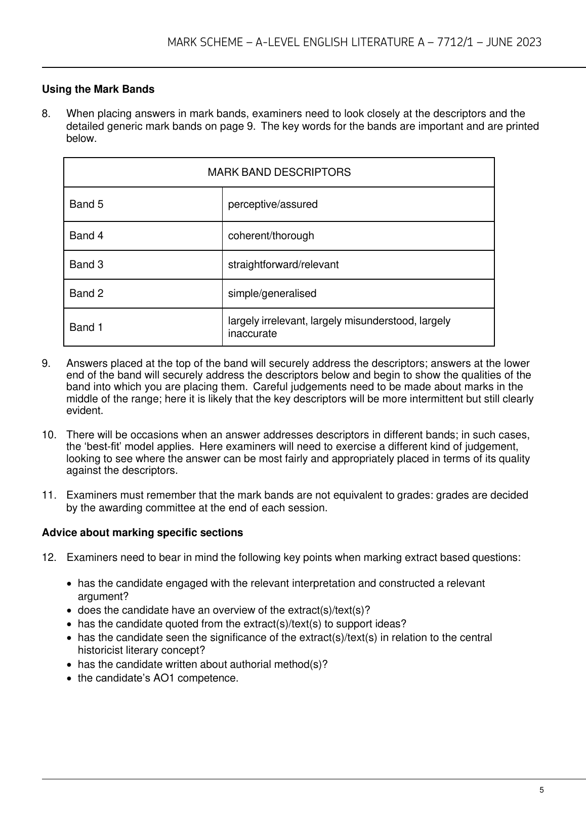 AQA A LEVEL ENGLISH LITERATURE A PAPER 1 JUNE 2023 MARK SCHEME (7712/1: Love through the ages)