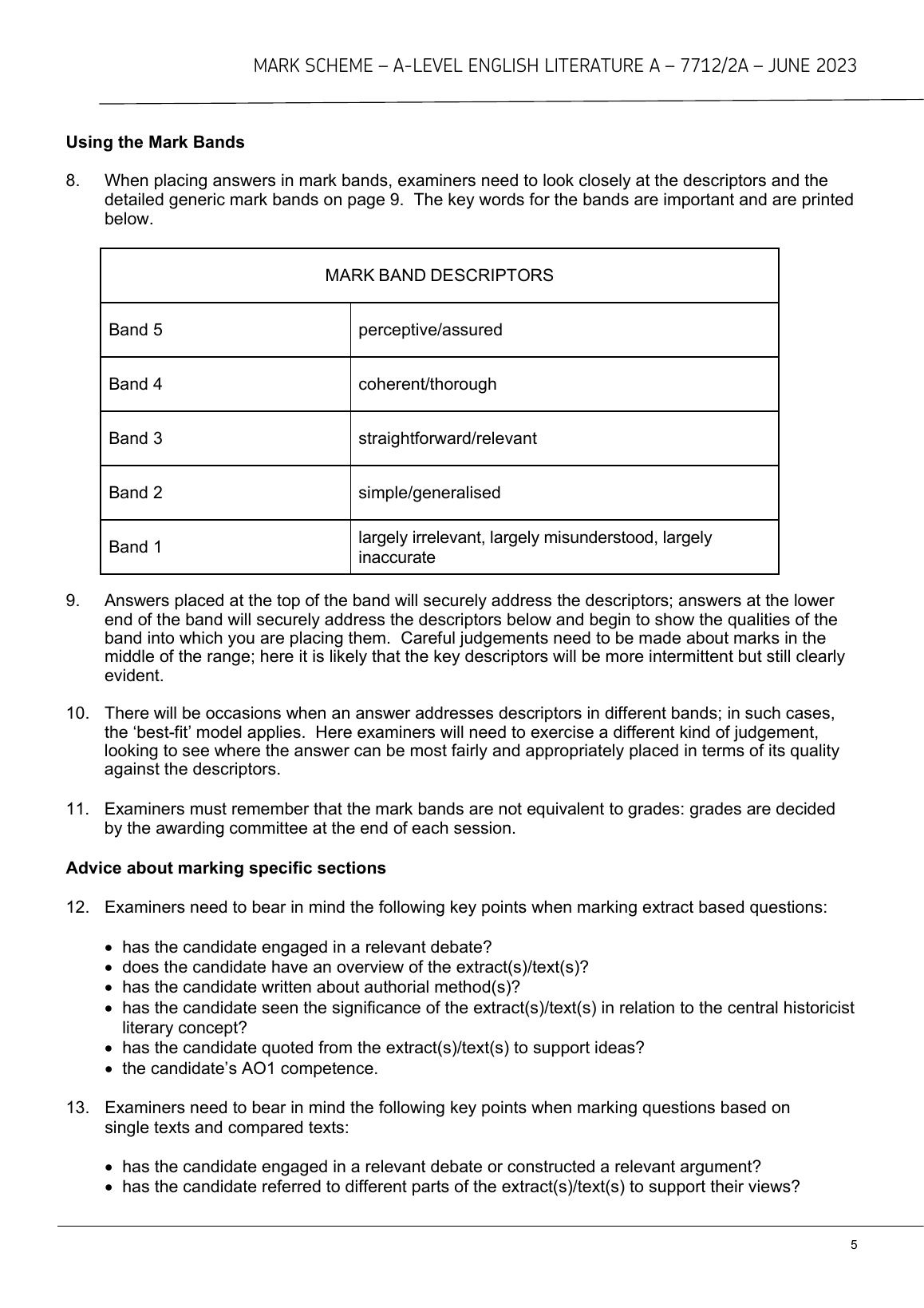 AQA A LEVEL ENGLISH LITERATURE A PAPER 2 JUNE 2023 MARK SCHEME (7712/2A: Texts in shared contexts: WW1 and its aftermath)