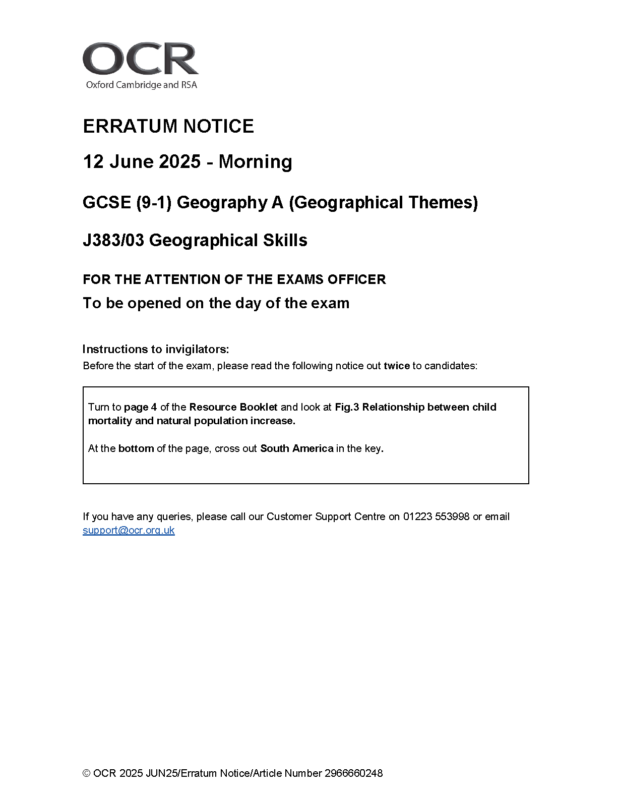 2025 OCR GCSE Geography A Resource Booklet (J383/03: Geographical Skills)