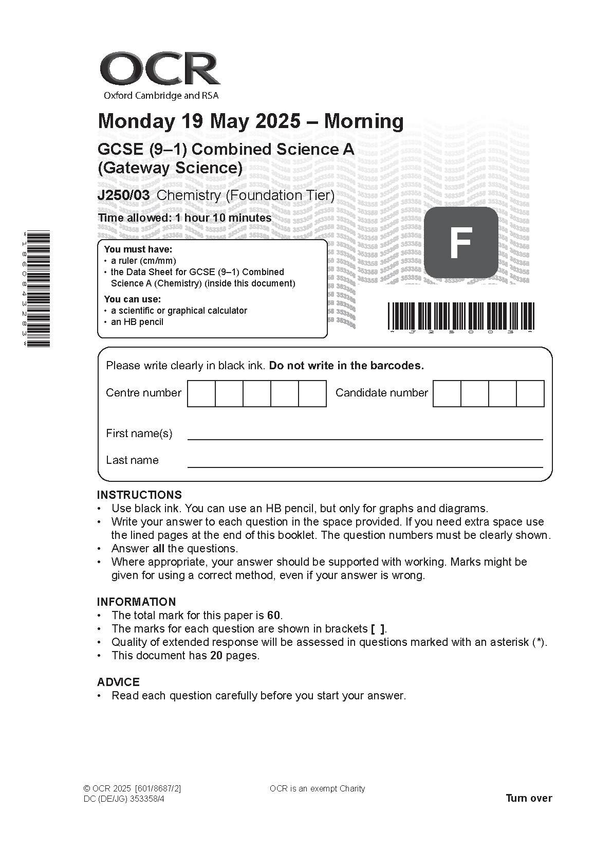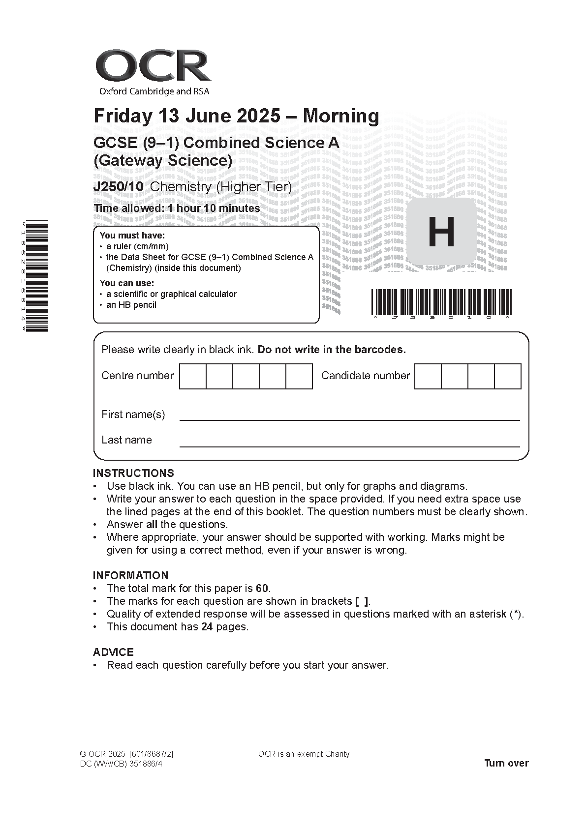 2025 OCR GCSE Combined Science A (Gateway Science) Paper 7 (J250/07 Biology : Higher Tier))