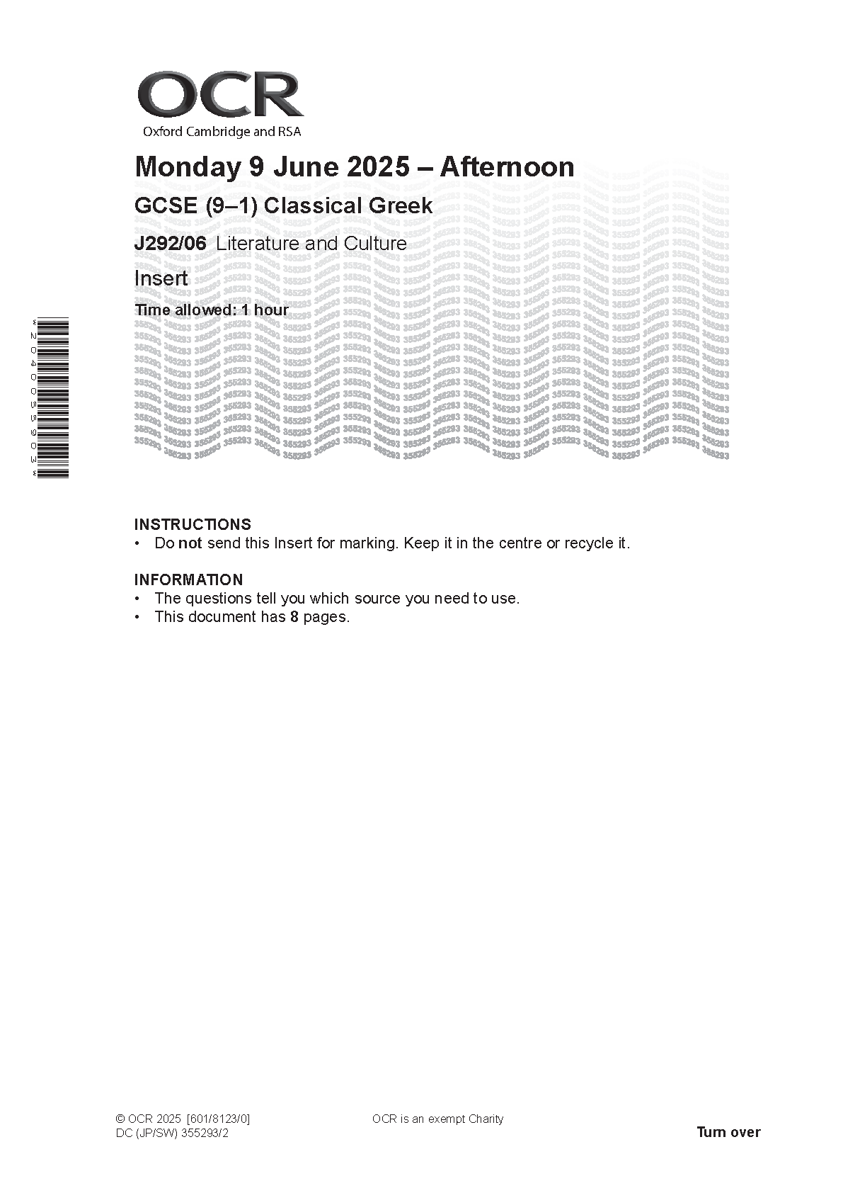 2025 OCR GCSE Classical Greek Insert Paper 6 (J292/06: Literature and Culture)