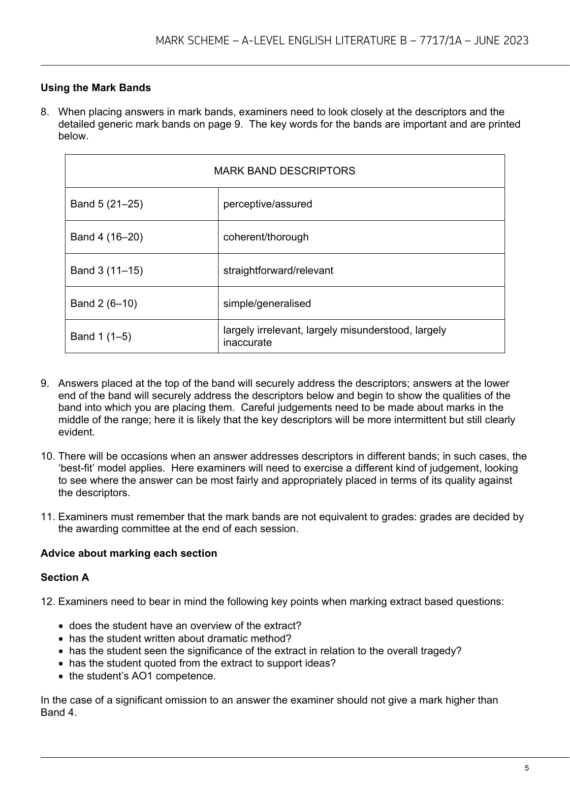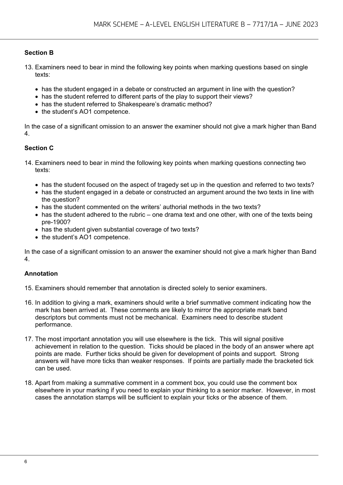 AQA A LEVEL ENGLISH LITERATURE B PAPER 1 JUNE 2023 MARK SCHEME (7717/1A: Literary genres: Aspects of tragedy)