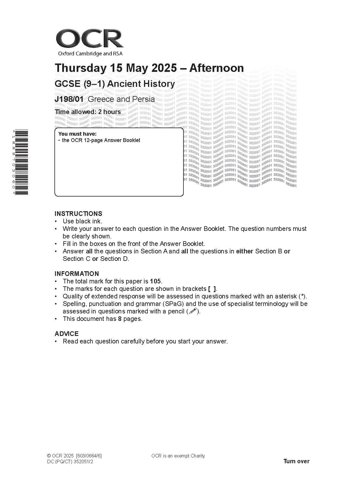 2025 OCR GCSE Ancient History Paper 1 (J198/01: Greece and Persia)