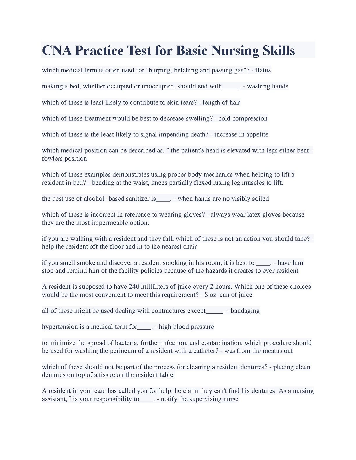 CNA Practice Test for Basic Nursing Skills. BRAND NEW 2023!!!. DOWNLOAD on www.hackedexams.com INSTANTLY.