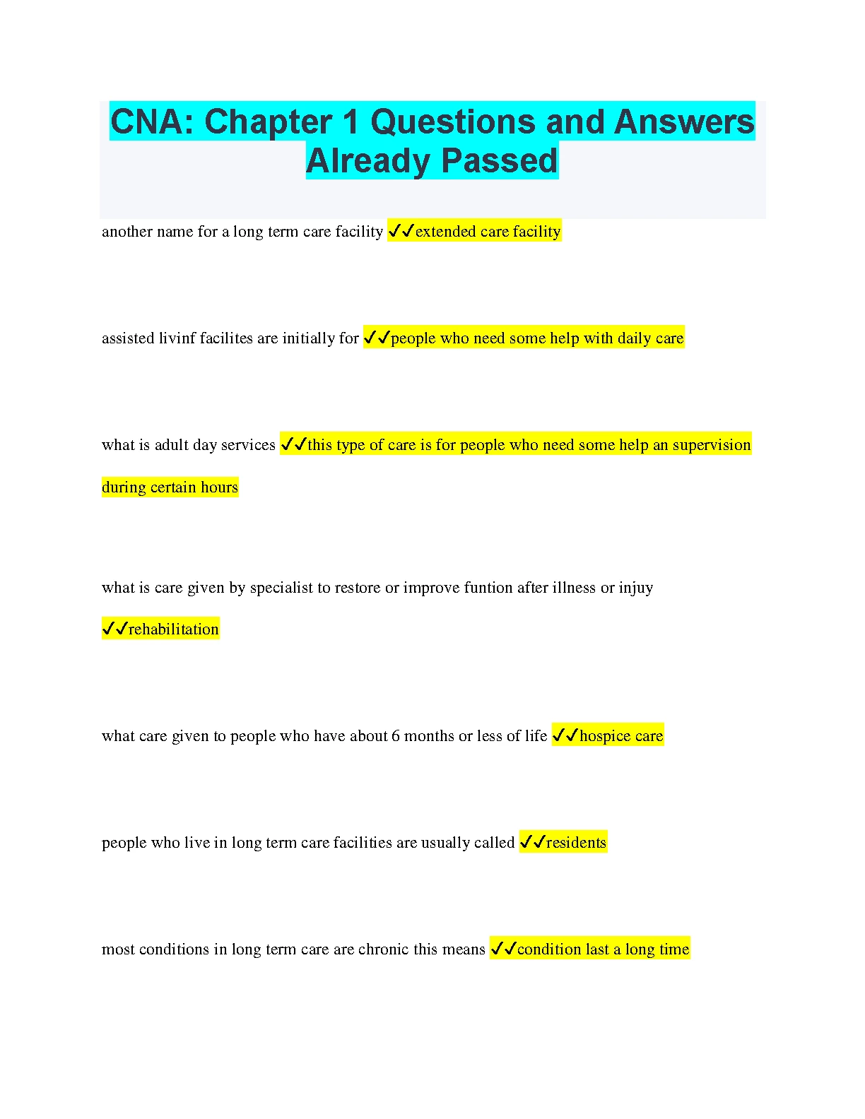 CNA: Chapter 1 Questions and Answers 2023. GRADED A+. DOWNLOAD on www.hackedexams.com INSTANTLY.