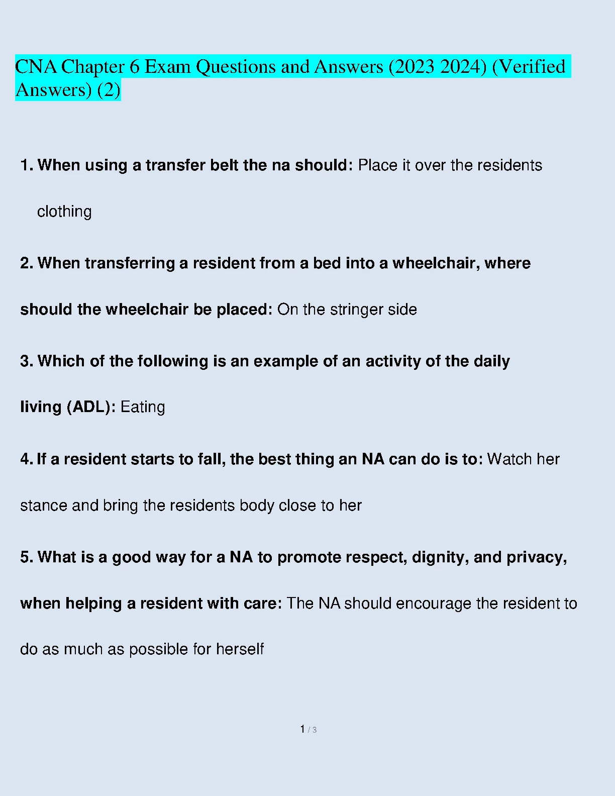 CNA Chapter 6 Exam Questions and Answers (2) 2023/2024. DOWNLOAD on www.hackedexams.com INSTANTLY.