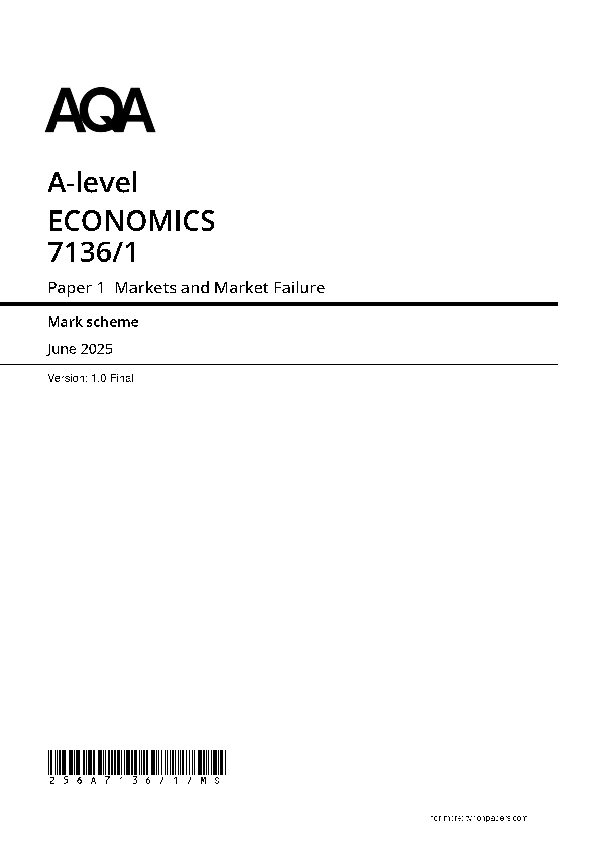 2025 AQA A Level Economics Mark Scheme Paper 1 (7136/1: Markets and Market Failure)