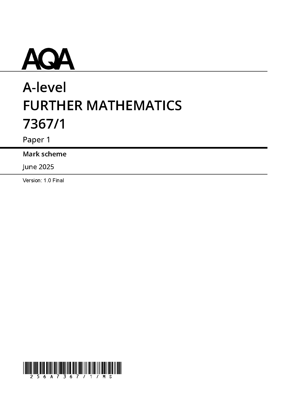 2025 AQA A Level Further Mathematics Mark Scheme Paper 1 (7367/1)