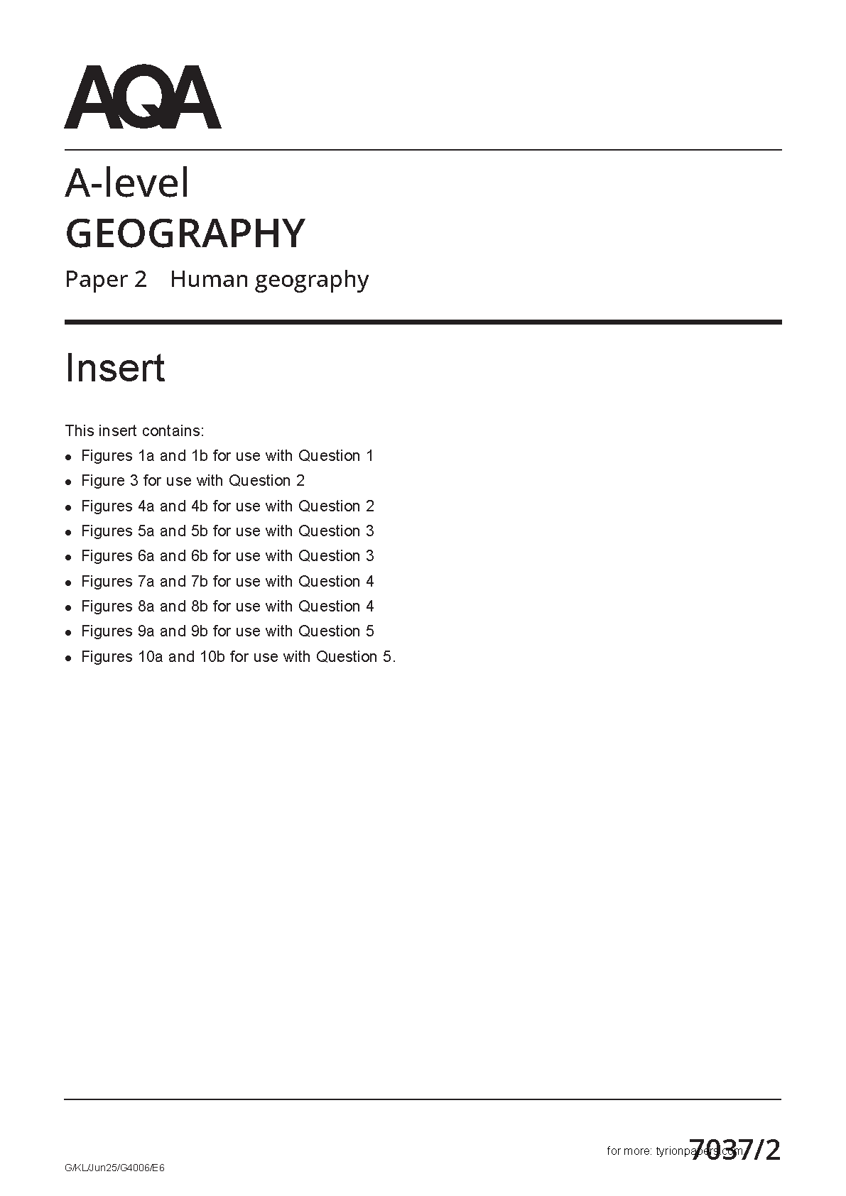 2025 AQA AS Level Geography Insert Paper 2(7037/2: Human geography)