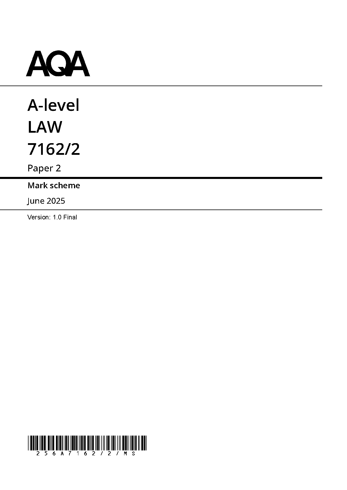 2025 AQA A Level Law Mark Scheme Paper 2 (7162/2)