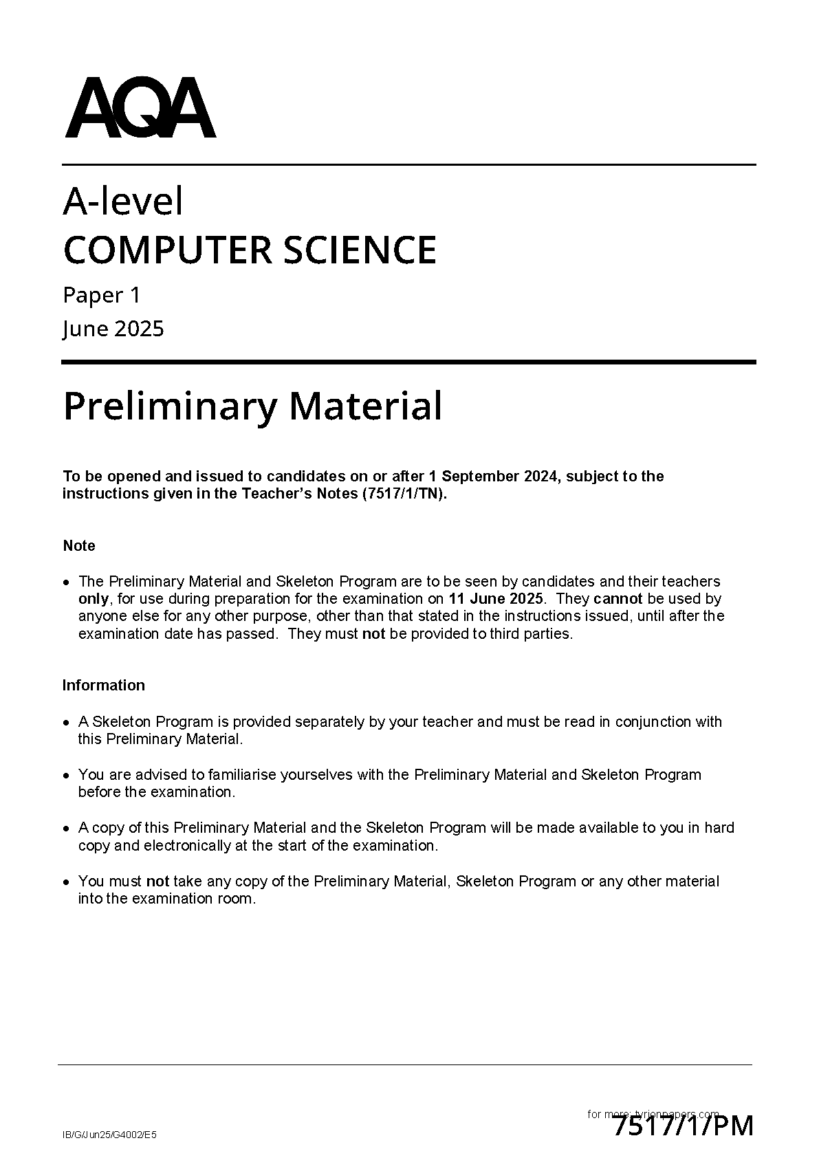 2025 AQA AS Level Computer Science Preliminary Material (7517/1/PM)