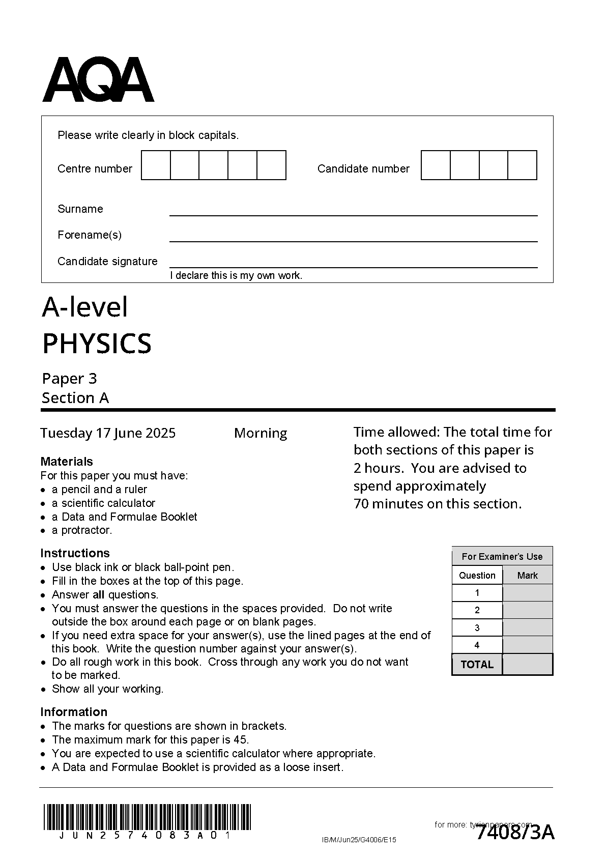 2025 AQA A Level Physics Paper 3 (7408/3A: Section A)