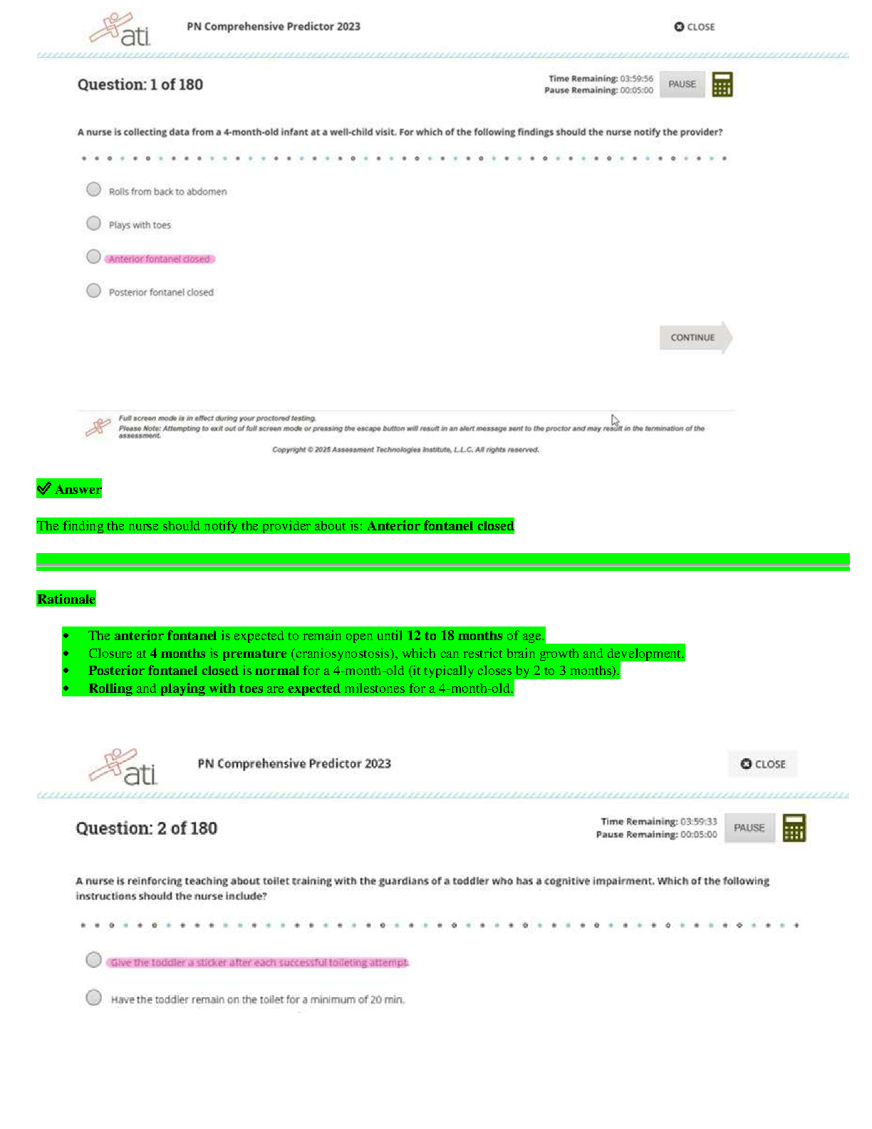 Excel in your nursing studies with the complete Test Bank for the ATI PN Comprehensive Predictor 2023. This essential guide features a full set of 180 authentic exam questions, each with verified answers and in-depth rationales to solidify your understanding. Designed to mirror the actual exam format, this resource is perfect for nursing students aiming to master critical concepts and confidently pass their ATI predictor exam, ultimately preparing them for success on the NCLEX-PN. Get instant access and start your journey to acing your exams.