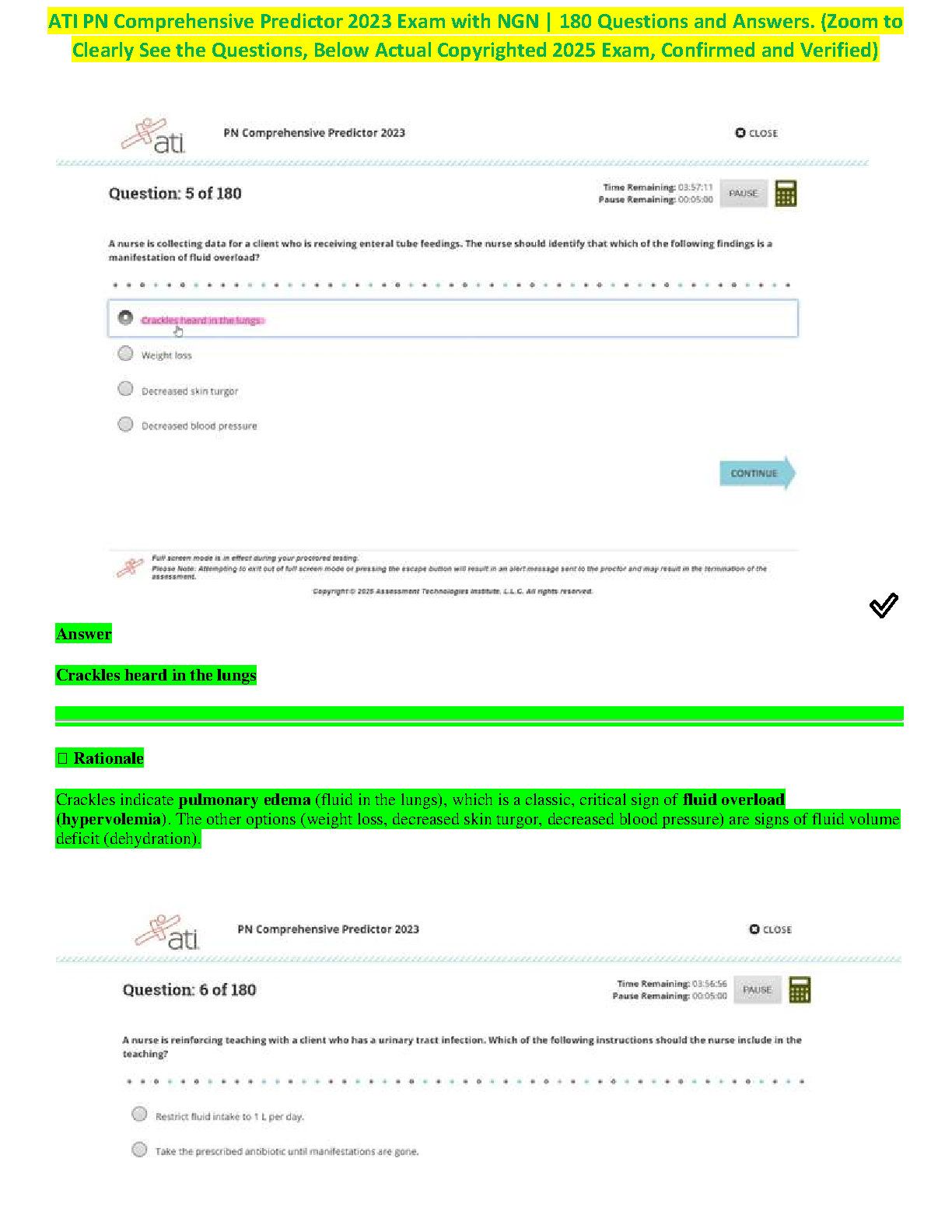 ATI PN Comprehensive Predictor 2023 Test Bank: 180 Real Exam Questions with Verified Answers and Detailed Rationales