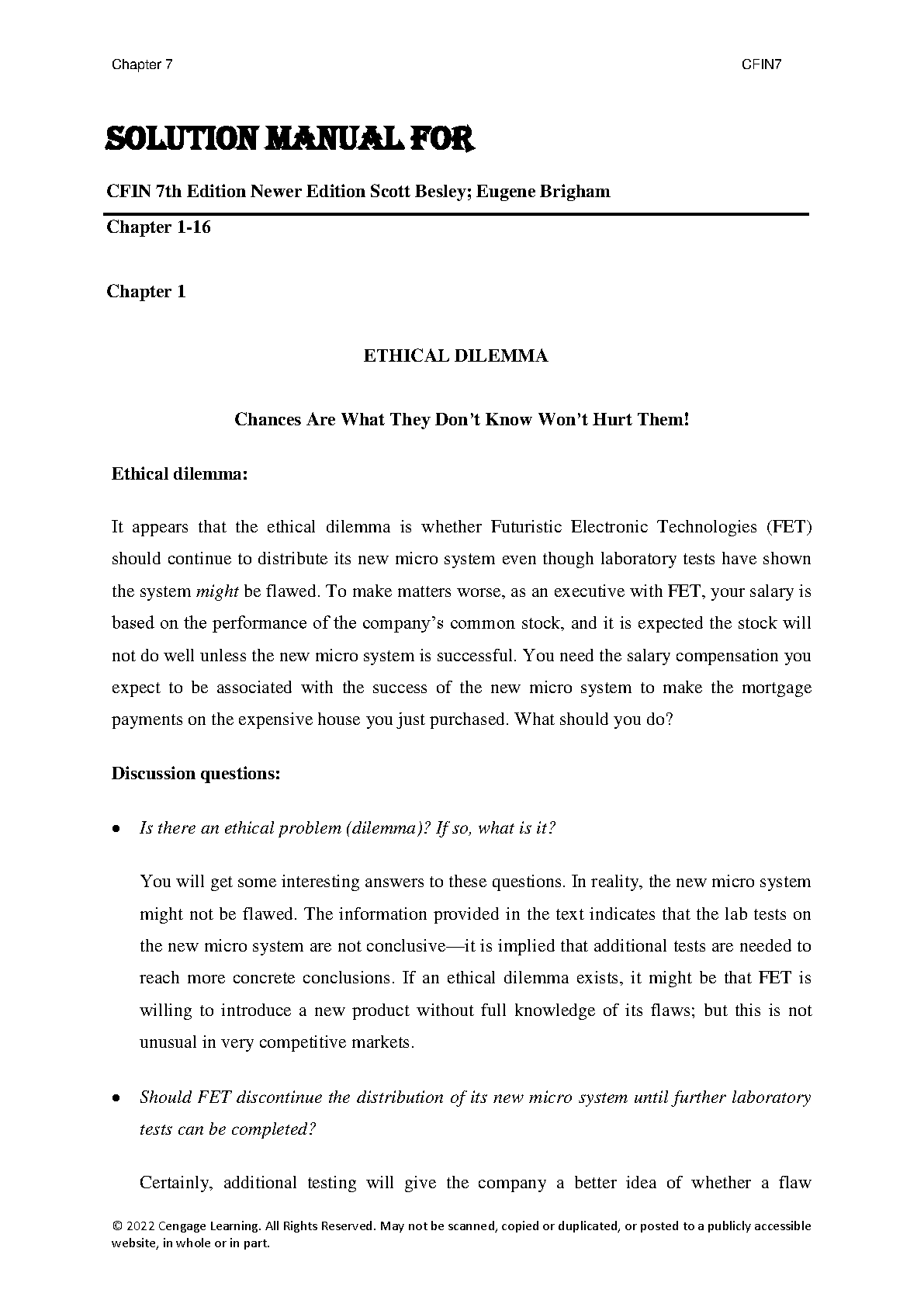 Solution Manual for CFIN, 7th Edition by Scott Besley and Eugene F. Brigham