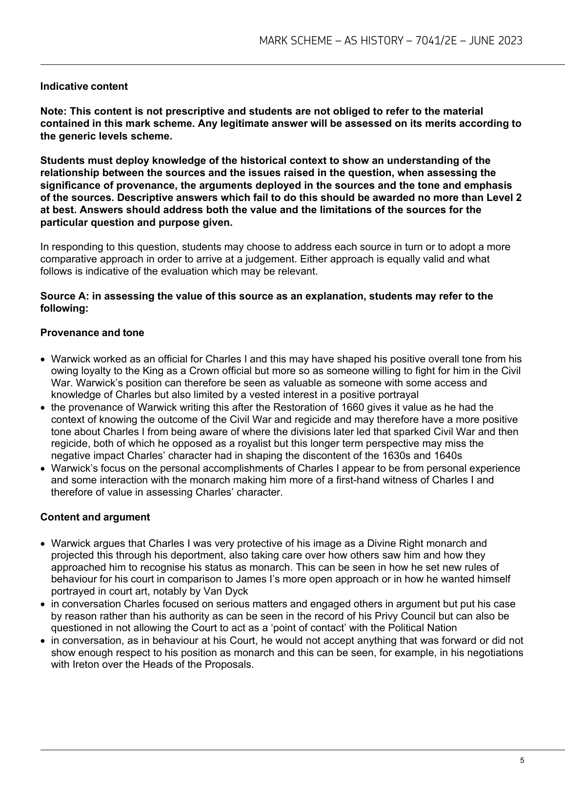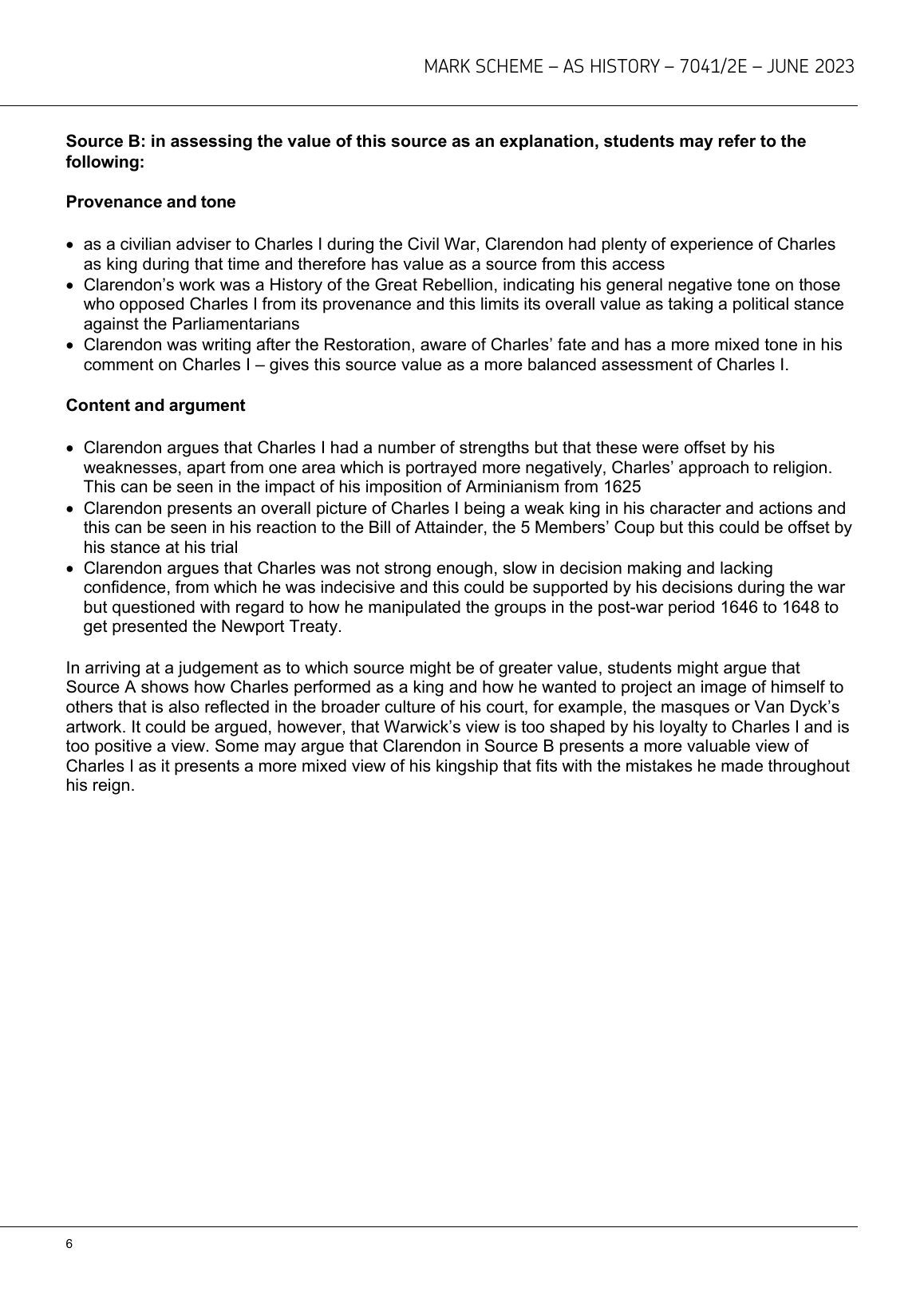 AQA AS HISTORY PAPER 2 JUNE 2023 MARK SCHEME (7041/2E: The English Revolution, 1625–1660 - The origins of the English Civil War, 1625–1642)