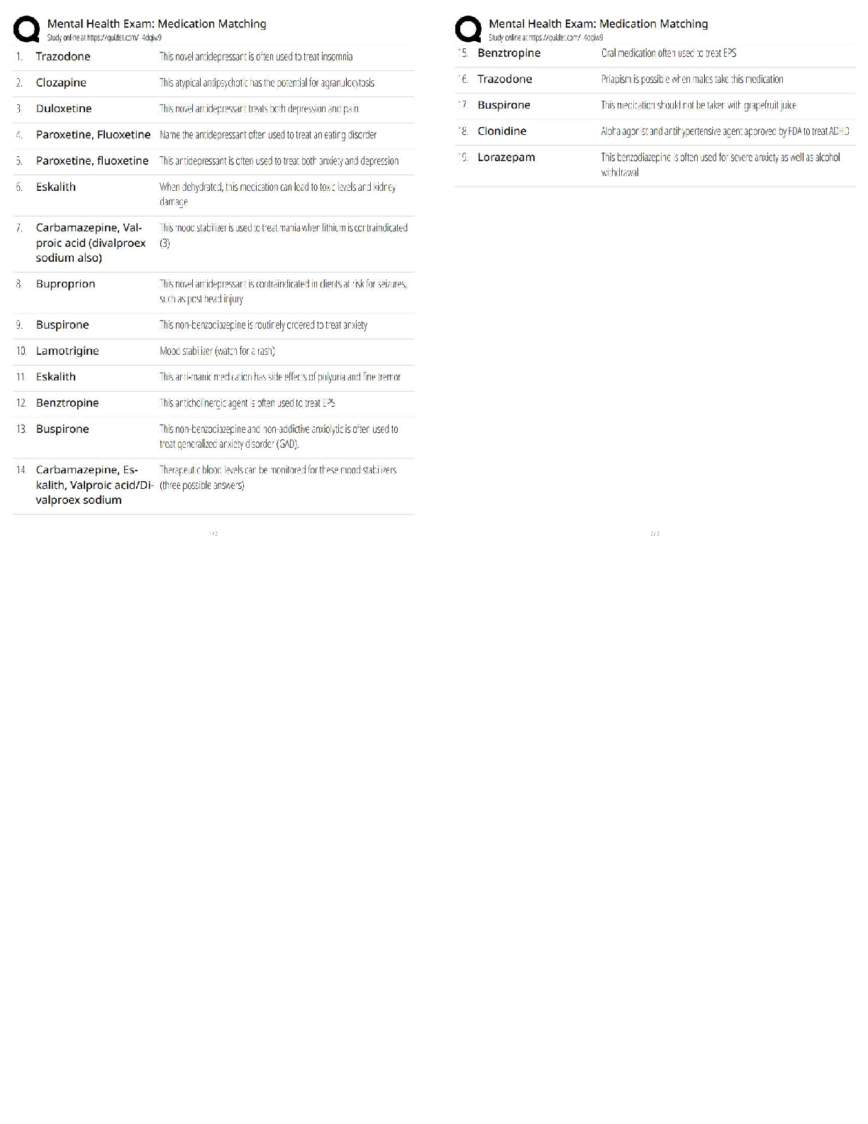 Ace your Mental Health PN HESI exam with our definitive 2025/2026 medication matching guide. This resource is expertly designed to help you master crucial psychiatric drugs, including antidepressants, antipsychotics, and mood stabilizers like Trazodone, Clozapine, and Eskalith. Quickly learn their uses, key side effects, and important nursing considerations to answer exam questions with confidence. Secure a passing grade on your first try and avoid costly resits with this essential study tool.
