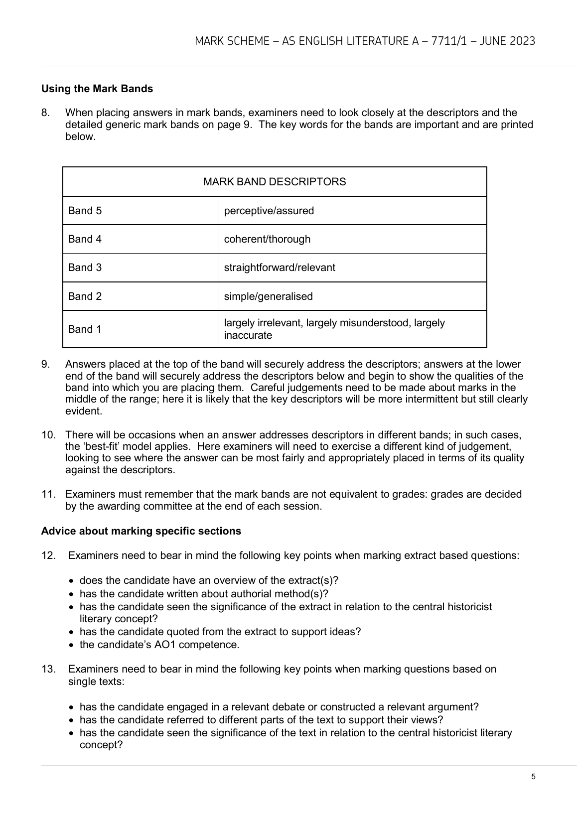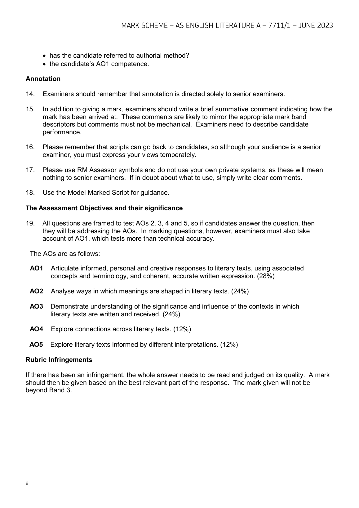 AQA AS ENGLISH LITERATURE A PAPER 1 JUNE 2023 MARK SCHEME (7711/1: Love through the ages: Shakespeare and poetry)