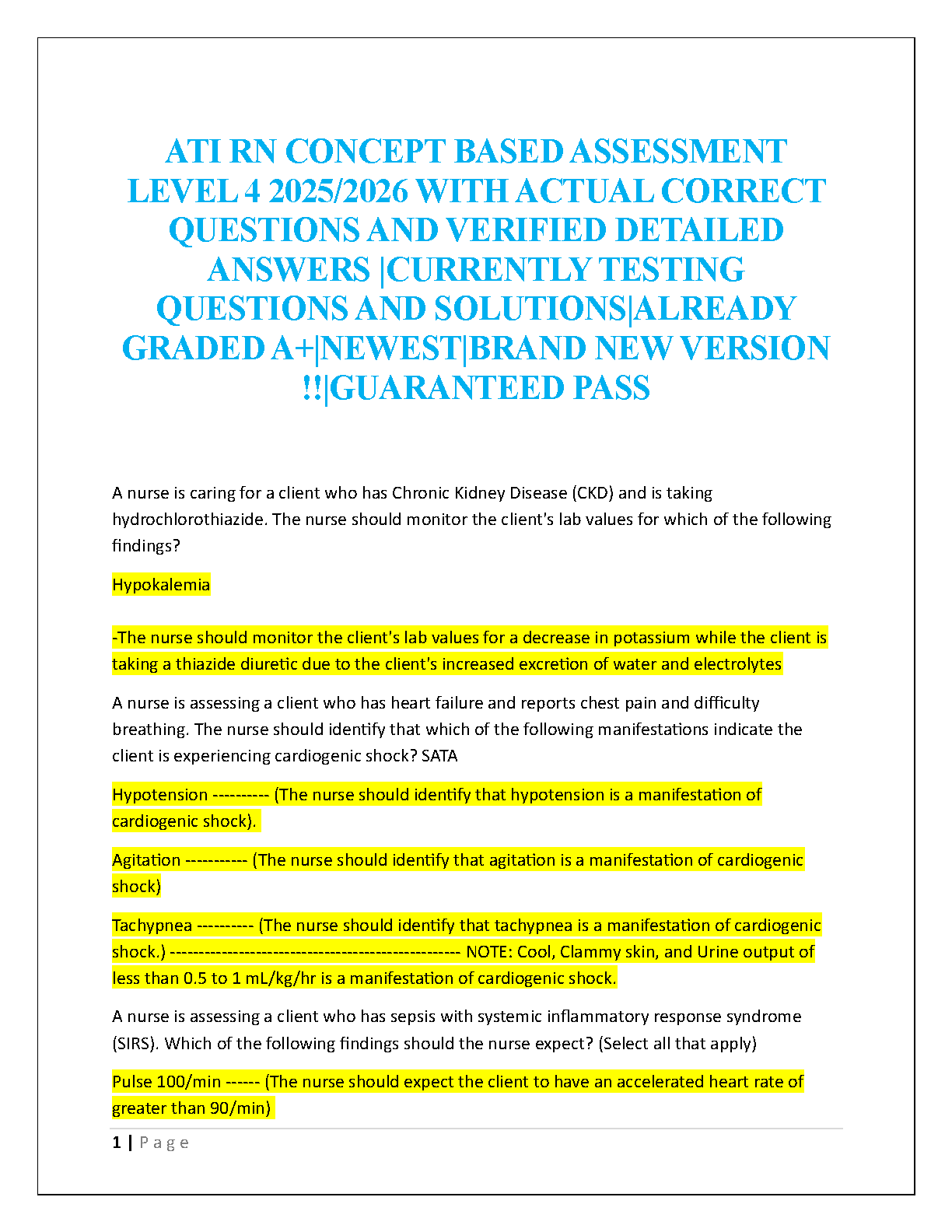 Ace your nursing exams with the ultimate study resource: the ATI RN Concept Based Assessment Level 4 Test Bank for the 2025/2026 academic year. This comprehensive guide features a complete collection of actual, currently tested questions paired with meticulously verified, detailed answers and rationales. Designed to ensure you achieve an A+ grade, this resource covers critical nursing concepts seen in the real exam. Master complex topics, boost your confidence, and pass your ATI assessment with flying colors on your first try. Download now for guaranteed success!