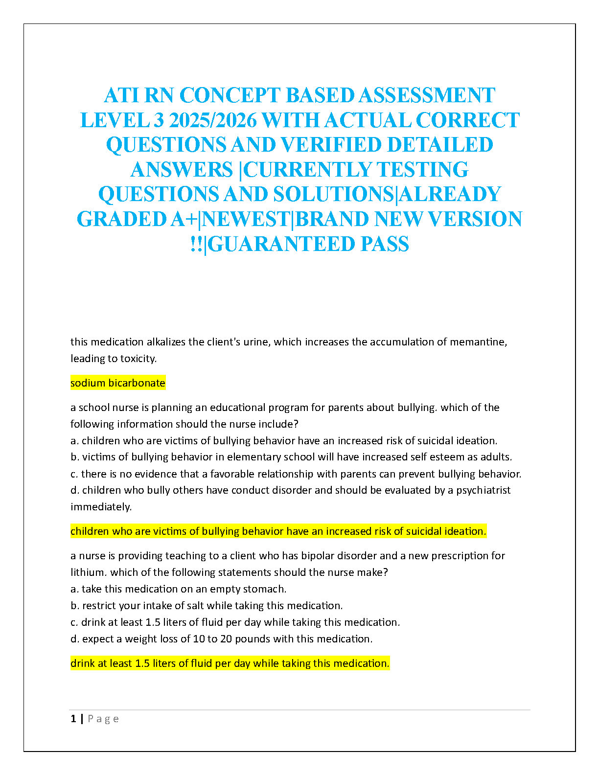 ATI RN Concept Based Assessment Level 3 Exam 2025/2026: Comprehensive Q&A Study Guide for a Guaranteed A+ First-Attempt Pass